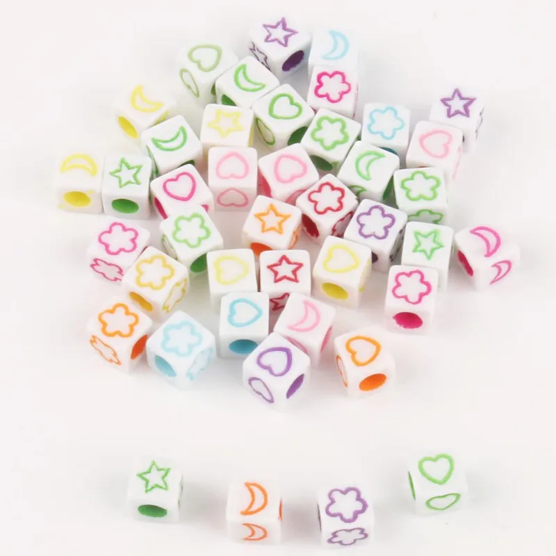 6 мм Разноцветные квадратные акриловые бусины Луна Звезда цветок Сердце куб свободные разделительные бусины для изготовления ювелирных изделий своими руками Браслеты Аксессуары
