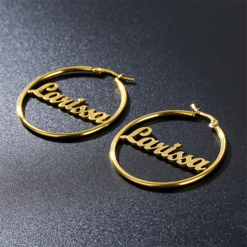 Индивидуальные именные серьги из нержавеющей стали на заказ, больши...