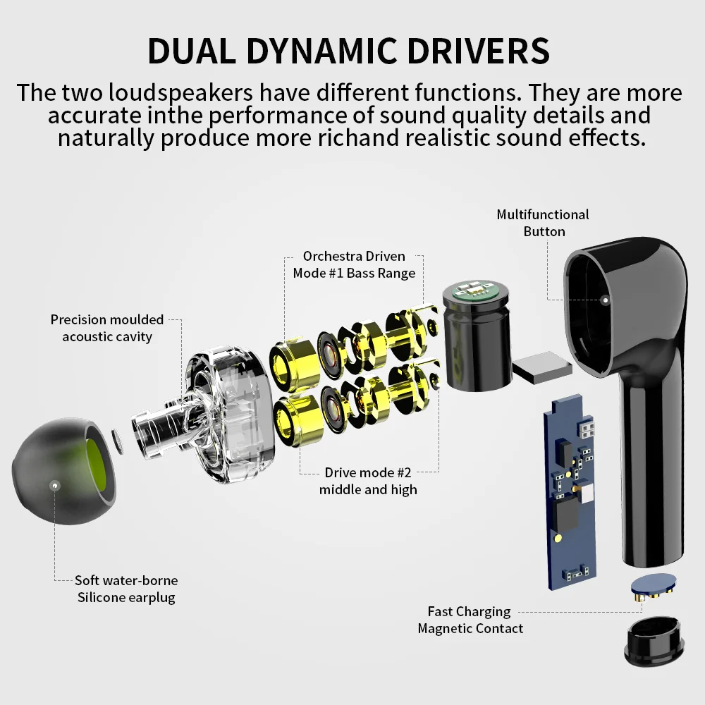 Двойные динамические драйверы слог S115 наушники TWS 4 Динамик звук...