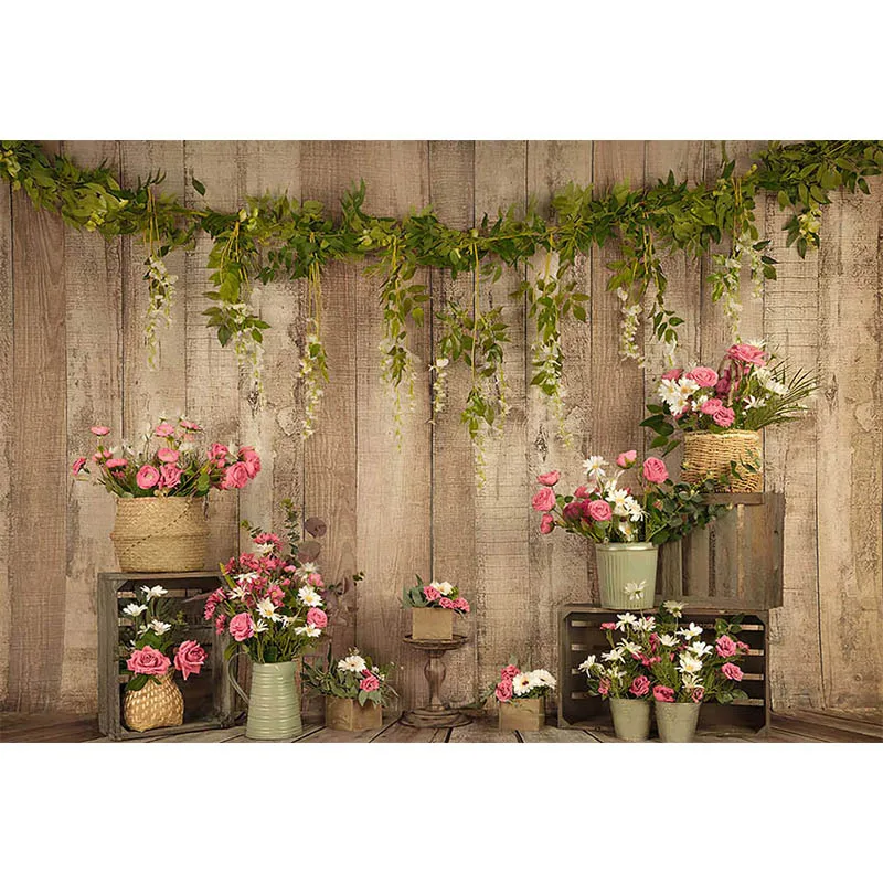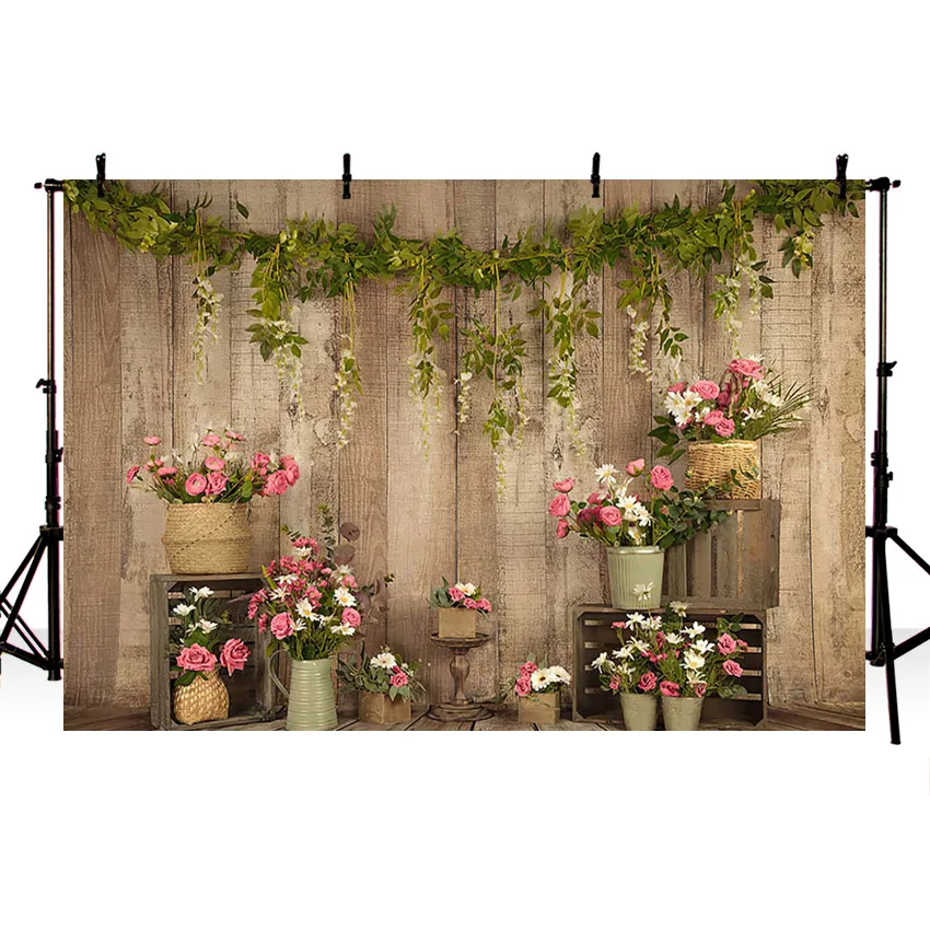 Фон Avezano для фотосъемки детей, студийный декор с изображением розовых цветов, досок и зеленых листьев, день рождения