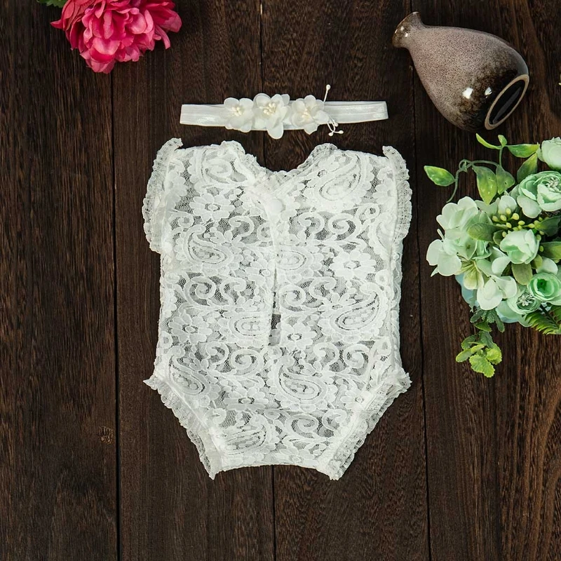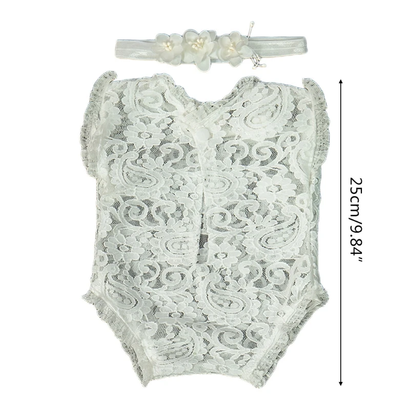 Комплект для фотосъемки новорожденных из 2 предметов с кружевными повязка на голову Ромпер