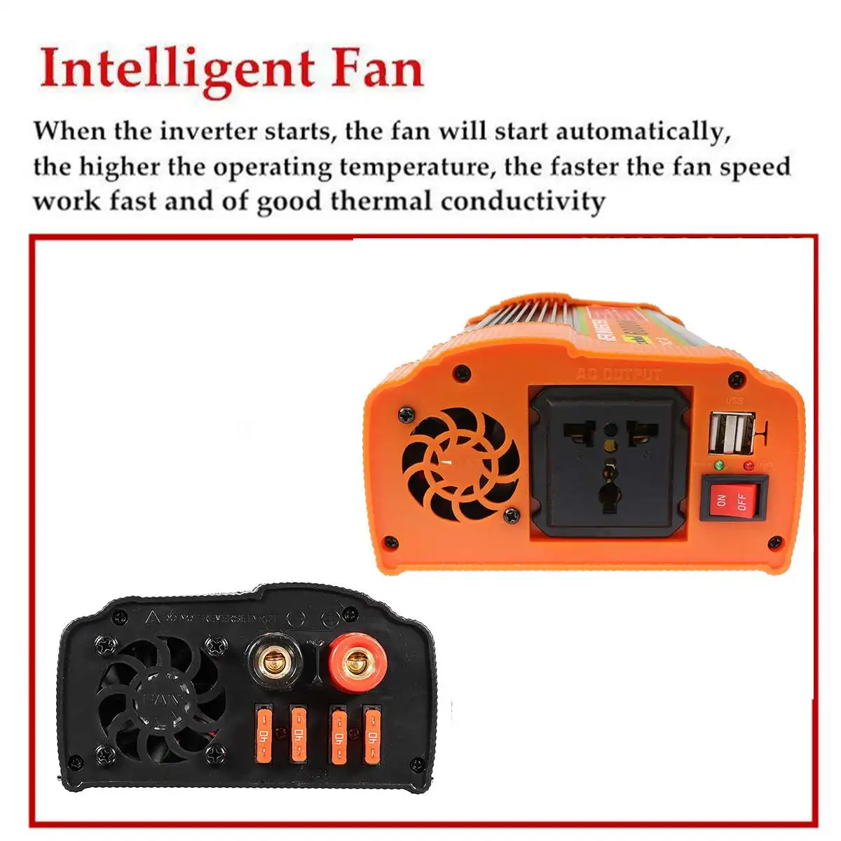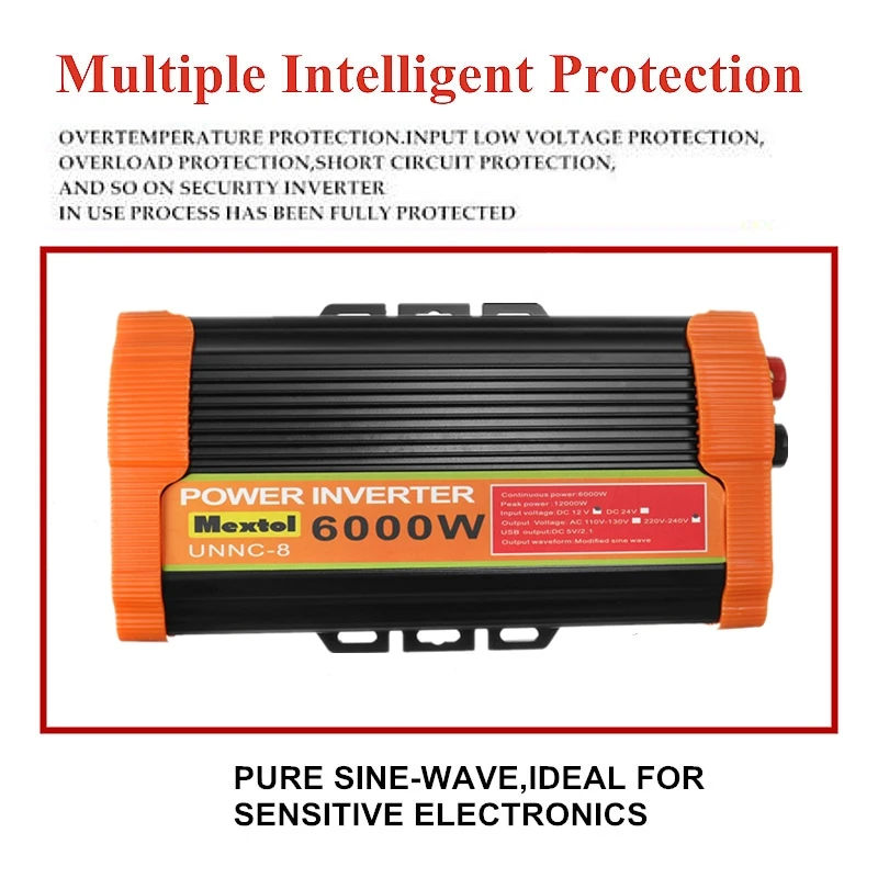 Особенности:-Инвертор может преобразовывать DC12V в AC 220V.-Перегрузка, перегрев, короткое замыкание, низкое напряжение, защита от перенапряжения.-Стабильное и точное выходное напряжение.-Встроенный вентилятор охлаждения с низким уровнем шума.-Поставляется с автомобильным зарядным устройством и парой зажимов типа «крокодил», удобными в использовании.-Этот инвертор имеет защиту от обратного ввода, отключение высокого входного напряжения, низкий вход. -Выключение напряжения, защита от перегрева, защита от короткого замыкания, защита от перегрузки.-Идеально подходит для телевизора, dvd-плеера и других бытовых приборов.-Обязательный набор для поездок по дорогам, каникул, прогулок на открытом воздухе, аварийных комплектов и многого другого.Характеристики:Модель: UNNC-8Цвет: оранжевыйНепрерывный выход: 6000 ВтПиковая мощность: 12000 ВтВходное напряжение: DC12VВыходное напряжение: 220 В переменного токаВыход USB: 5 В/2,1 а постоянного токаФорма выходного сигнала: модифицированная Синусоидальная волнаРегулирование нагрузки: 95%Регулирование линейного напряжения: 95%Эффективность инверсии: 95%Топологическая Структура Цепи: Тип push-pullДлина автомобильного зарядного кабеля: 50 смПримечание:Возможны незначительные отклонения из-за ручного измерения.Посылка включает:Автомобильный инвертор-1 шт.4x защитные пластины1 пара автомобильных зарядных кабелей1x Руководство пользователя