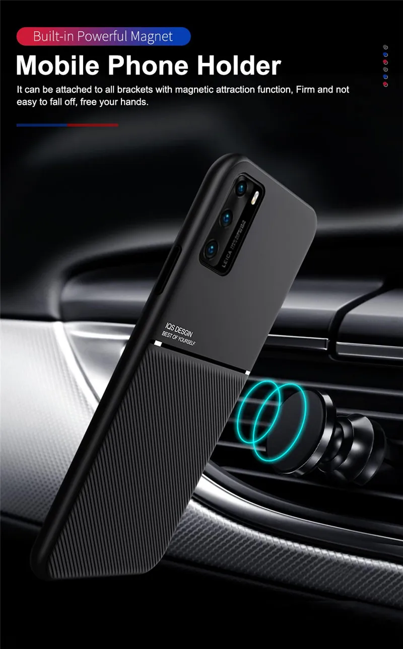 Автомобильный магнитный держатель чехол для Huawei P20 P30 P40 Lite 5G Mate 10 20 20X 30 40 Pro кожа текстура Силиконовый противоударный чехол