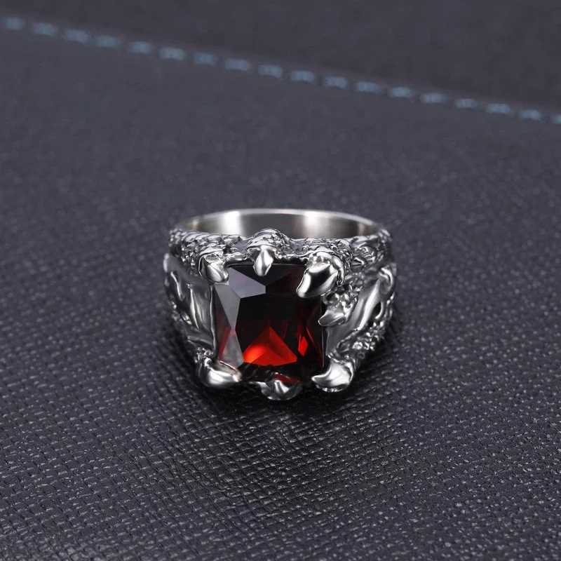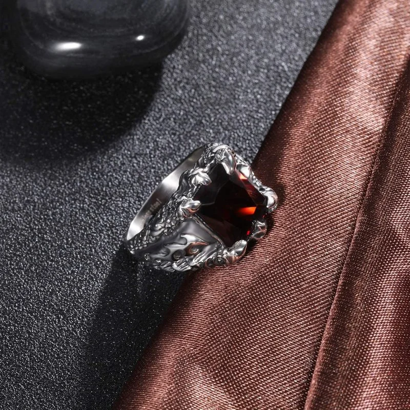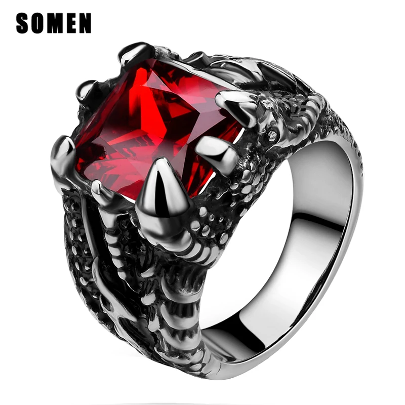 Мужское кольцо с красным камнем, нержавеющая сталь, когти дракона