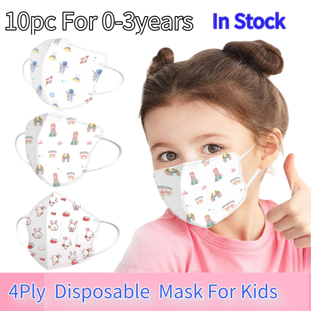 10 шт., 4 слоя мультяшной 3d-маски ffp2mask для детей 0-3 лет