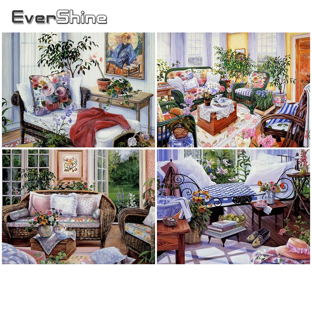 EverShine полная дрель квадратная Алмазная Картина Пейзаж Вышивка дом стразами Стразы изображение Цветочная Мозаика Декор для дома