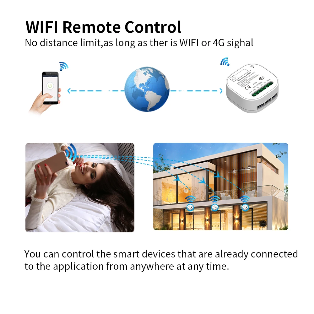 Умный коммутатор идеально совместим с Amazon Alexa, Google Home и т. д. Просто дайте голосовую команду вашему домашнему помощнику Alexa или Google для управления устройствами, когда вы находитесь в пути.