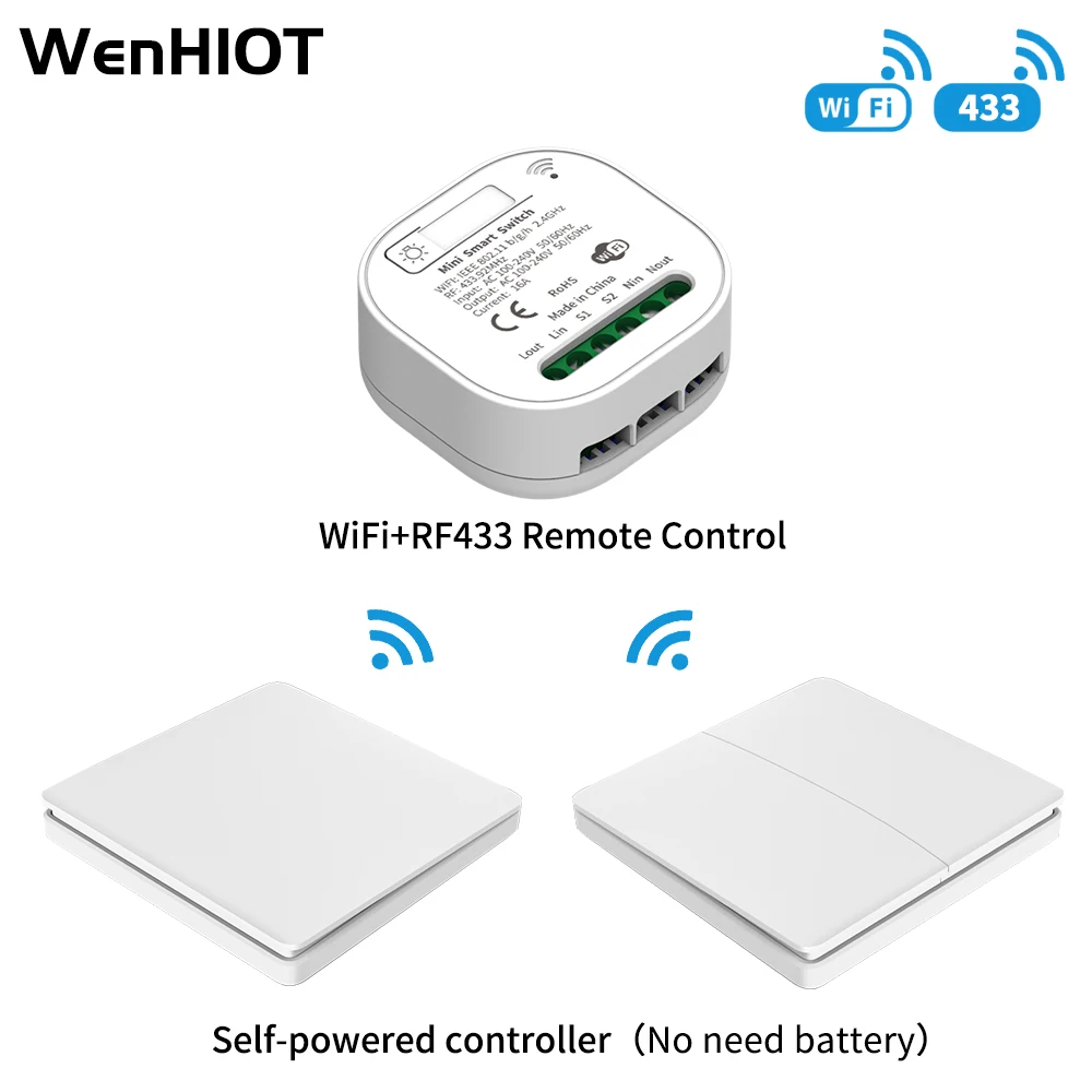 Автоматический переключатель WENHIOT для умного дома, переключатель таймера приложения Tuya, переключатель без аккумулятора, панель с кнопками, работает с Google Home Alexa