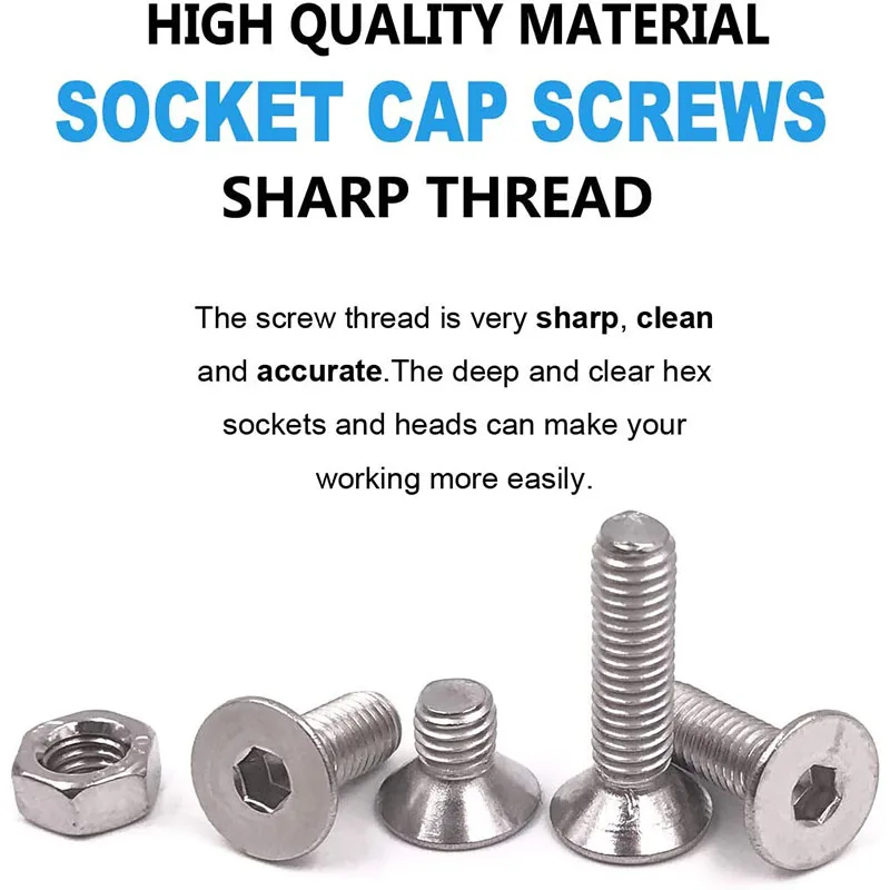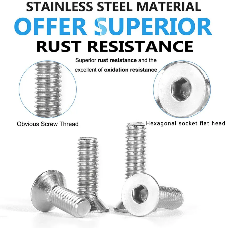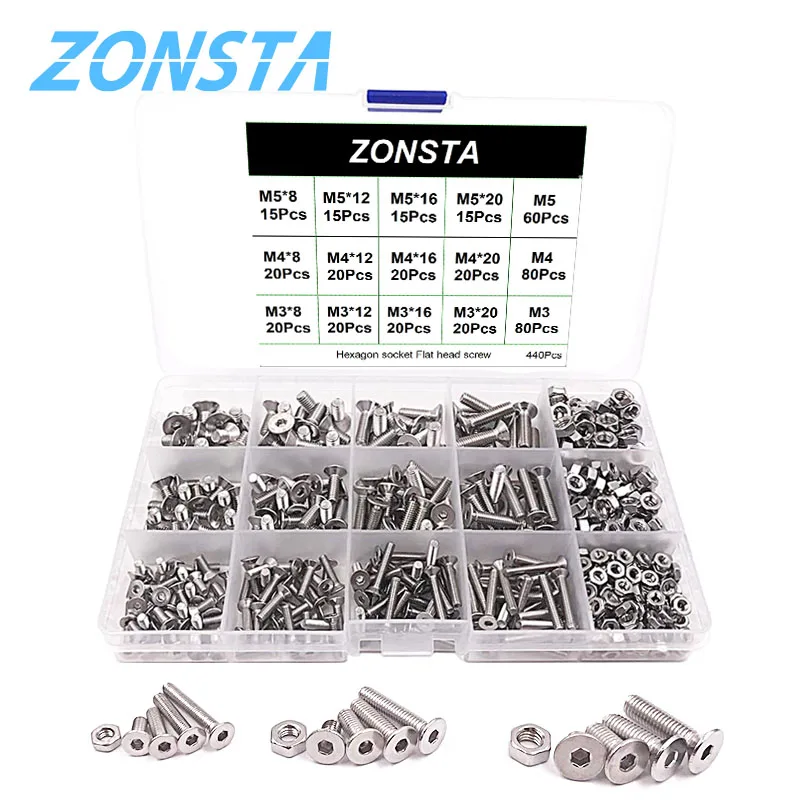 440 шт. Шестигранная головка для ключей набор винтов с шестигранной головкой M3 M4 M5 из нержавеющей стали плоский болт с потайной головкой и гайки набор винтов