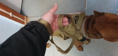 Отличная шлея, хорошего качества. Брала на овчарку (34кг), xl - немного великоват,l - была бы самое то. Застежки крепкие, надёжные. Собака ведёт себя в нем смирно не дёргает, управлять гороздо легче чем на ошейнике. Рекомендую!!!