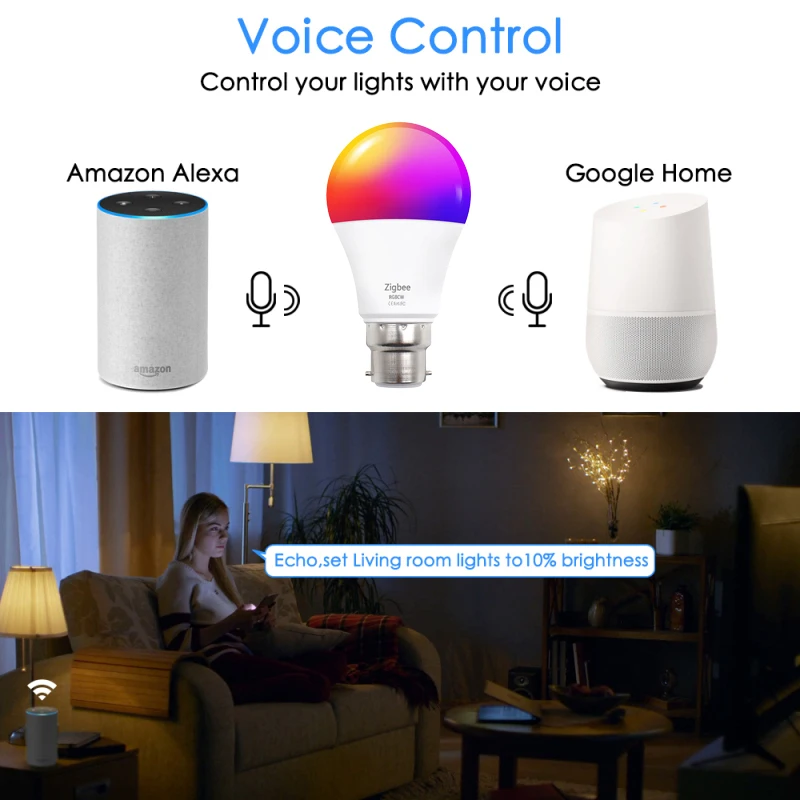 Zigbee умная Светодиодная лампа для дома светильник лампа 9 Вт10 Вт B22 RGB для Tuya Smart Life Smartthings Alexa Google Home Smart Home Управление