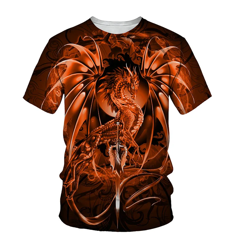 Футболка мужская с 3D-принтом Западного дракона, круглый вырез, короткий рукав, модная повседневная рубашка, топ в 3D стиле, лето, 2021