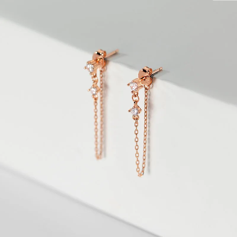 WANTME модные корейские уникальные серьги-гвоздики из стерлингового серебра 925 пробы с кисточками и цепочкой из циркония для женщин очаровательные ювелирные изделия для вечевечерние пирсинг
