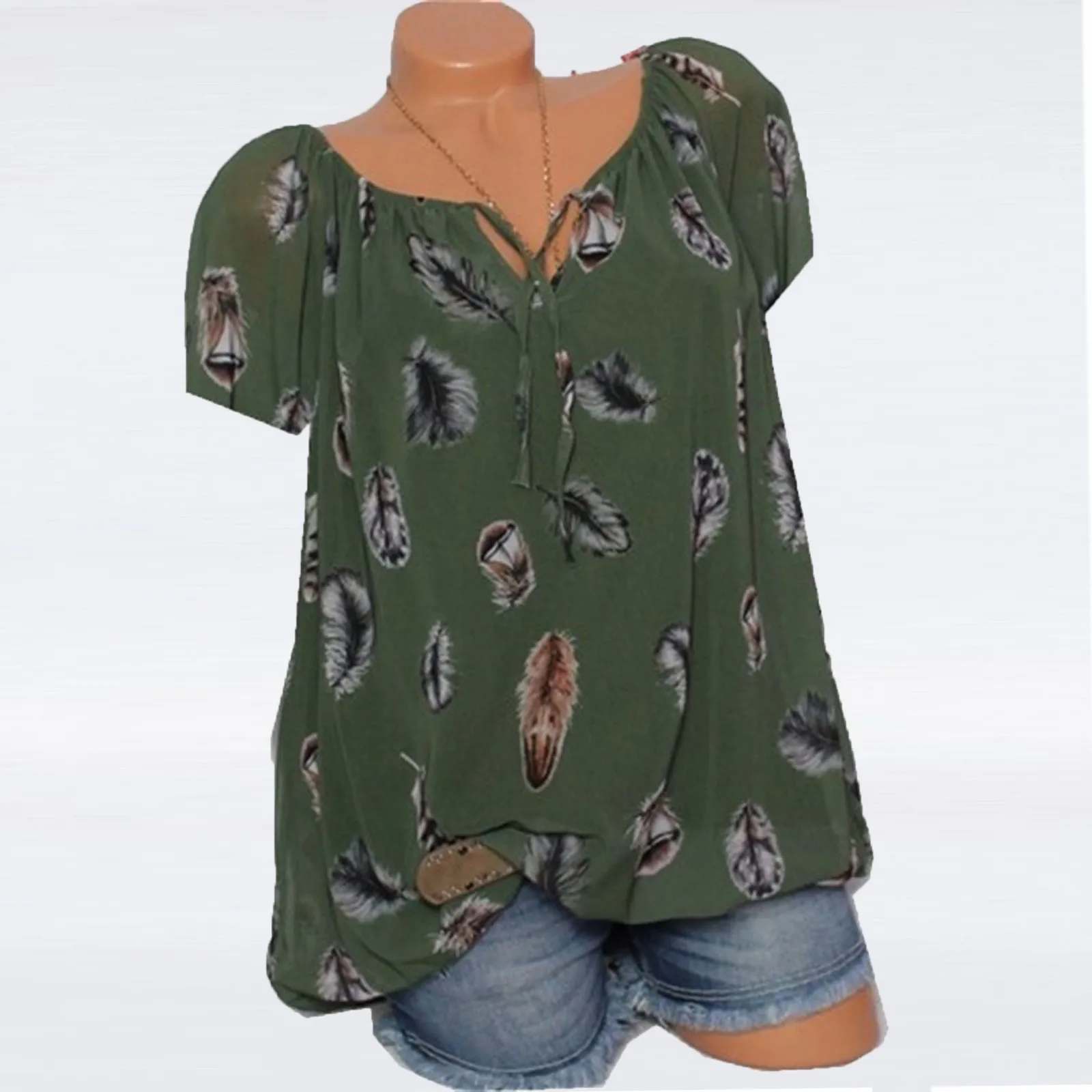Размера плюс блузка женская свободного покроя с принтом, топ с V-образным вырезом и коротким рукавом, винтажная рубашка, одежда для отдыха, лето 2021