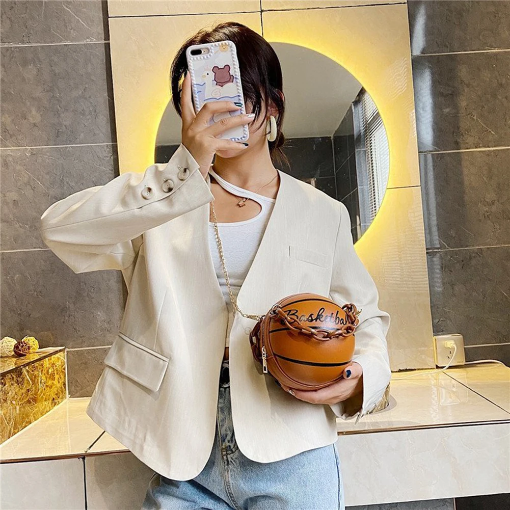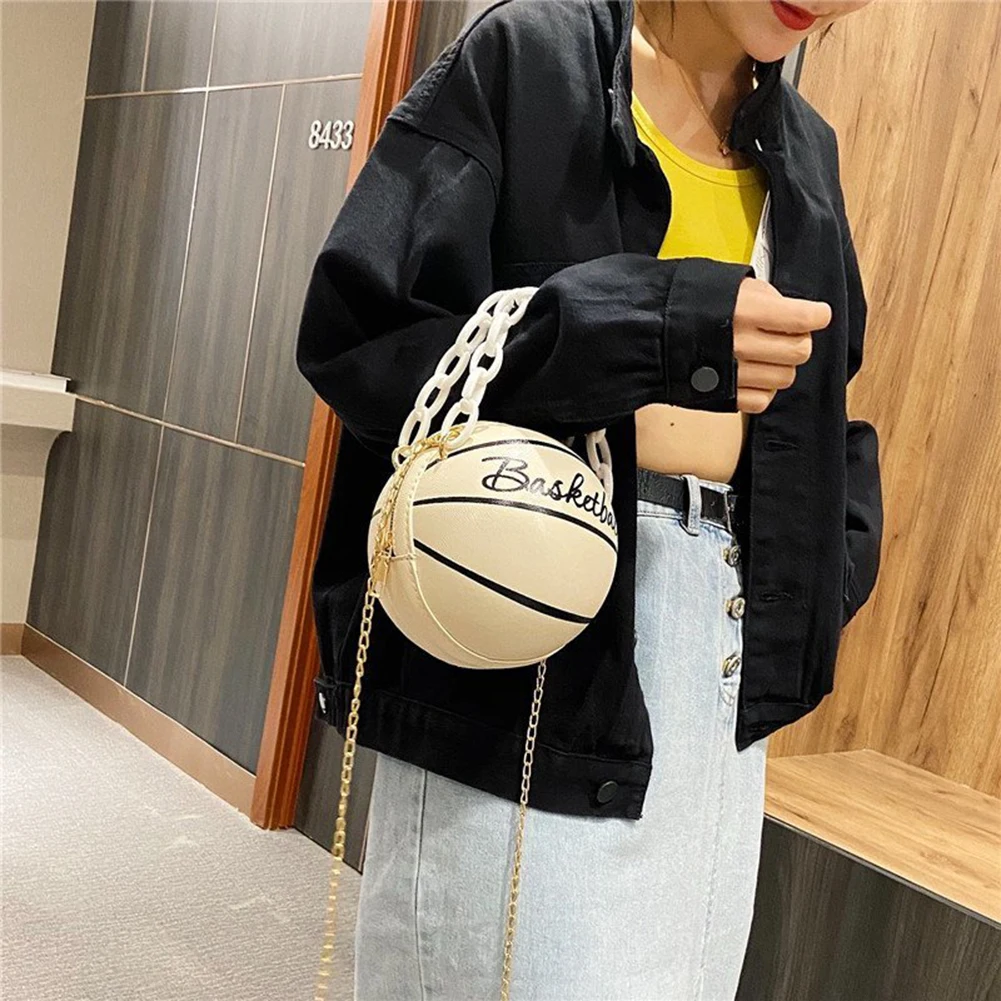 Модные баскетбольные сумки через плечо круглой формы для женщин, акриловая цепочка, повседневные маленькие сумки, кошелек из искусственной кожи, сумки через плечо