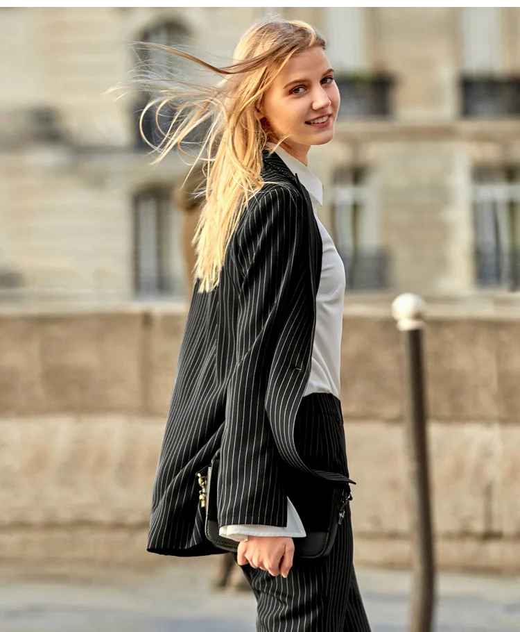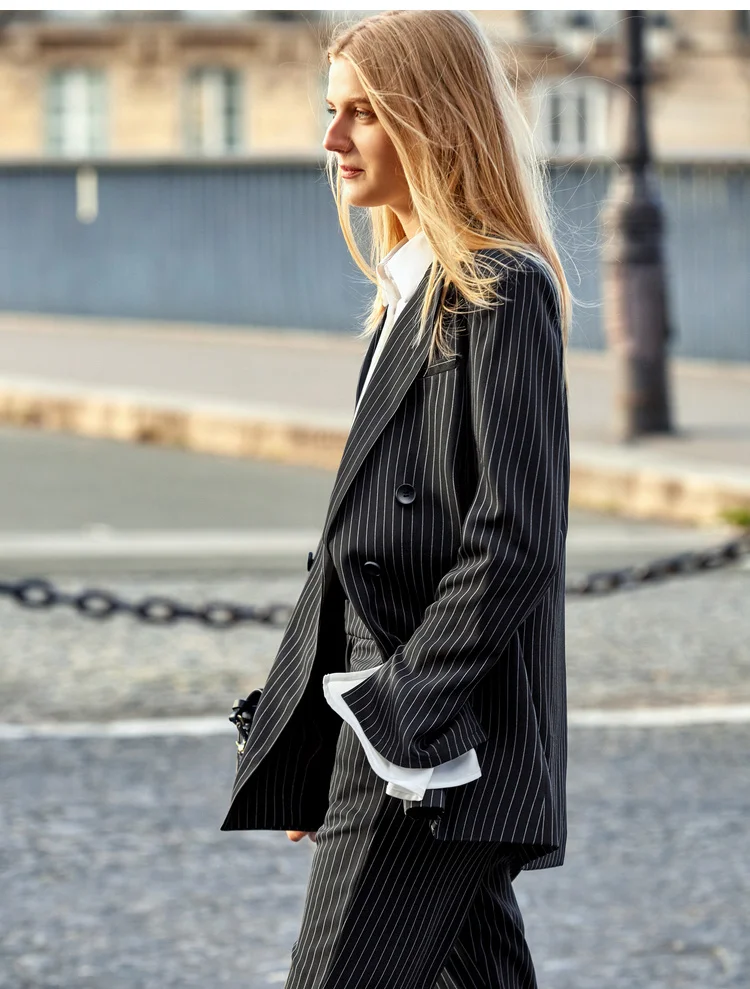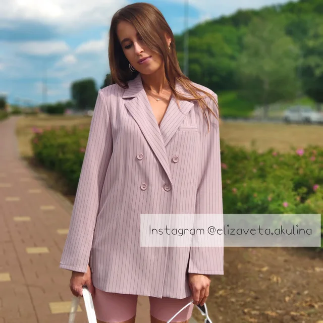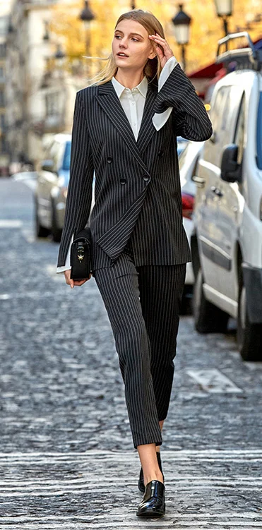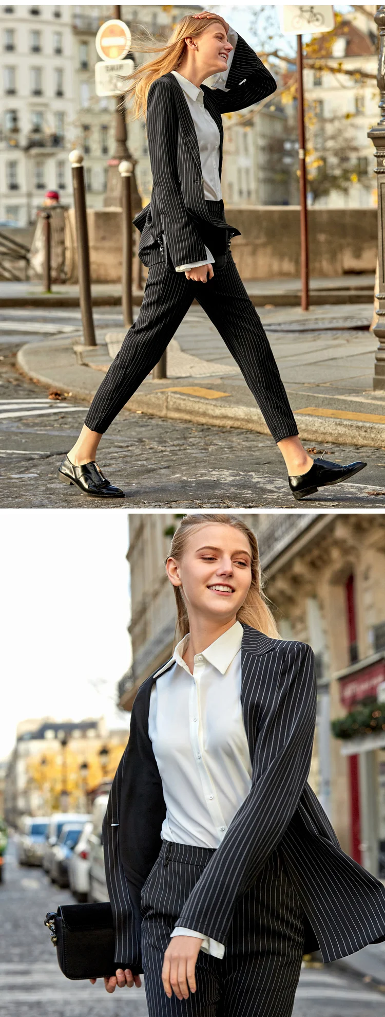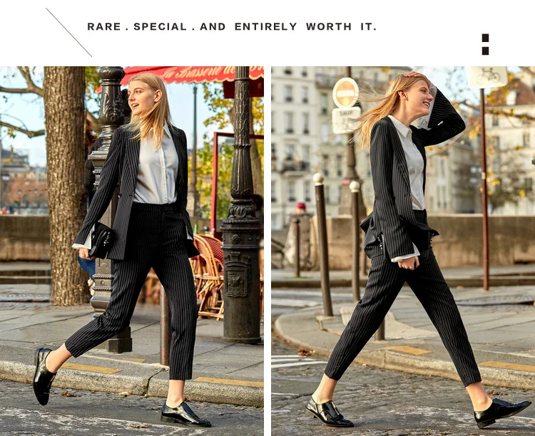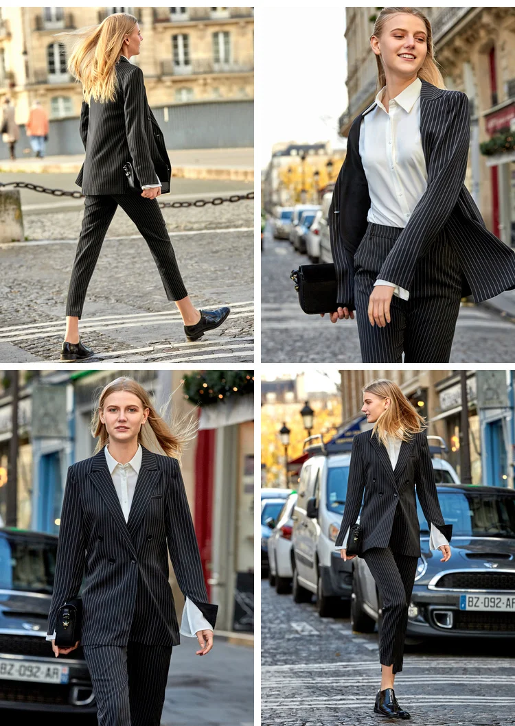 Рабочие брючные костюмы OL, комплекты из 2 предметов, двубортный полосатый розовый блейзер, брюки, костюм для женщин, брюки, комплект Feminino, весна