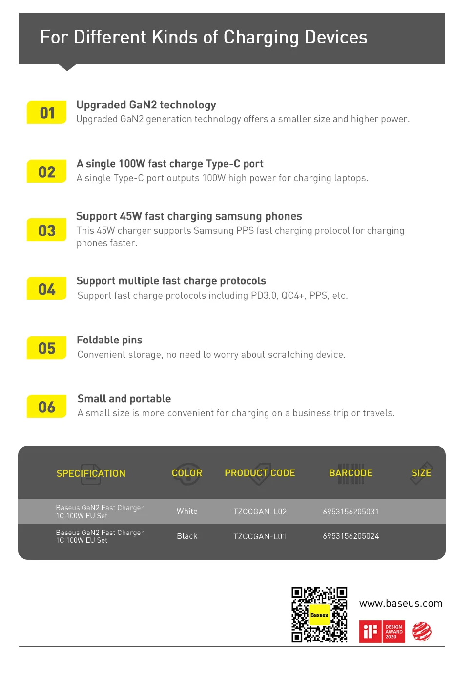 Номер моделиBaseus PD 100W GaN USB C Charger