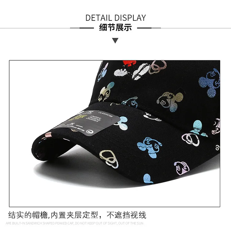 Кепка с Микки Маусом Disney для мальчиков-подростков, модная женская бейсболка в уличном стиле с мультипликационным принтом Минни, регулируемые смешные шапки