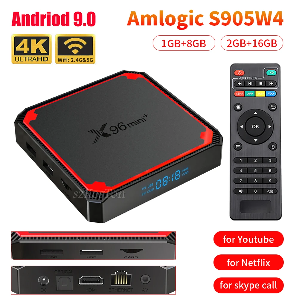 Процессор Amlogic S905W4 четырехъядерный ARM Cortex A53 @ 1,2 GHzGPU Penta-core Mali-450MP GPU @ 750 МГц,DDR DDR3 1 ГБ или 2 ГбFlash Original eMMC 8 ГБ или 16 Гб (дополнительно: 32 ГБ/64 Гб/128 ГБ)WiFi Amlogic W1: 2,4G & 5G; 802,11 acHDMI/4K * 2K UHD выход, HDMI 2.0AЗарядное устройство постоянного тока 5 В/2 АОС Android 9,0 OS, поддержка обновления OTAПластик: черный и красный цветВыход I/O 1 * HDMI 4K * 2K UHD, HDMI 2.0A2 * USB порт1 * Выход AV 480i/576i стандартное определение1 * оптический цифровой аудиовыход1 * RJ45 Ethernet интерфейс1 * Поддержка tf-карт 4 ГБ/8 ГБ/16 ГБ/32 ГБ/64 ГБ