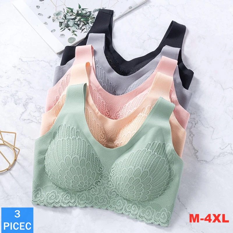 3 шт., женские кружевные Бесшовные бюстгальтеры с чашками пуш-ап