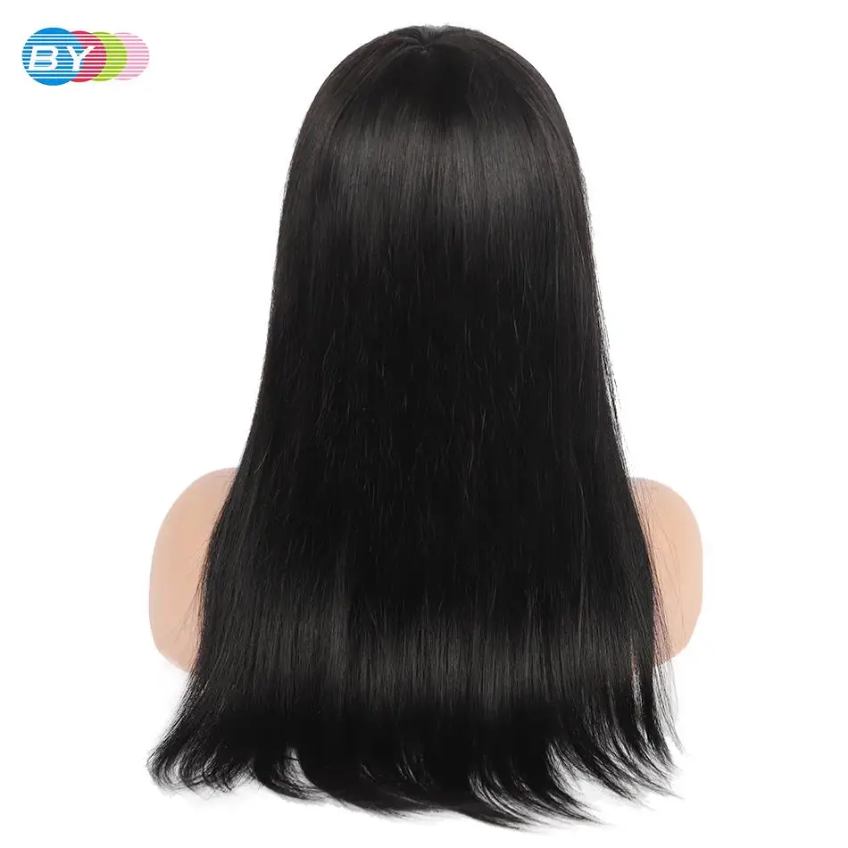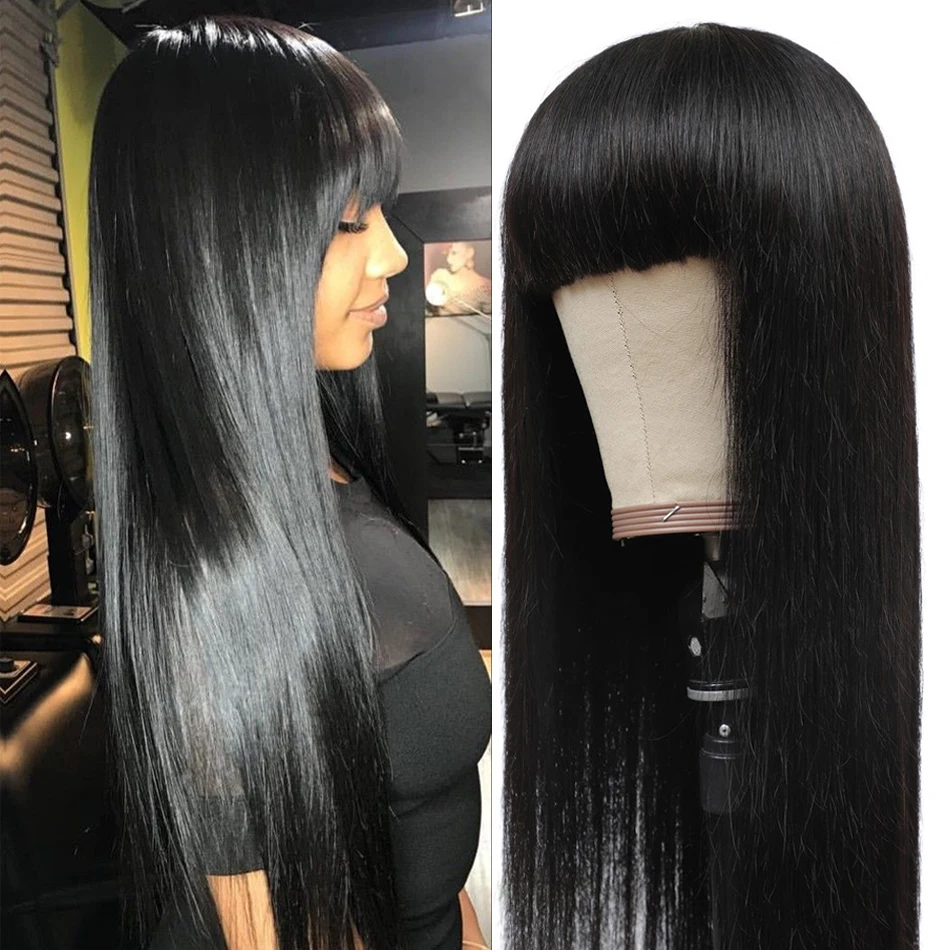 Парик из перуанских прямых человеческих волос с челкой, парик без клея с челкой, полноценный парик для женщин, дешевые парики Remy с челкой