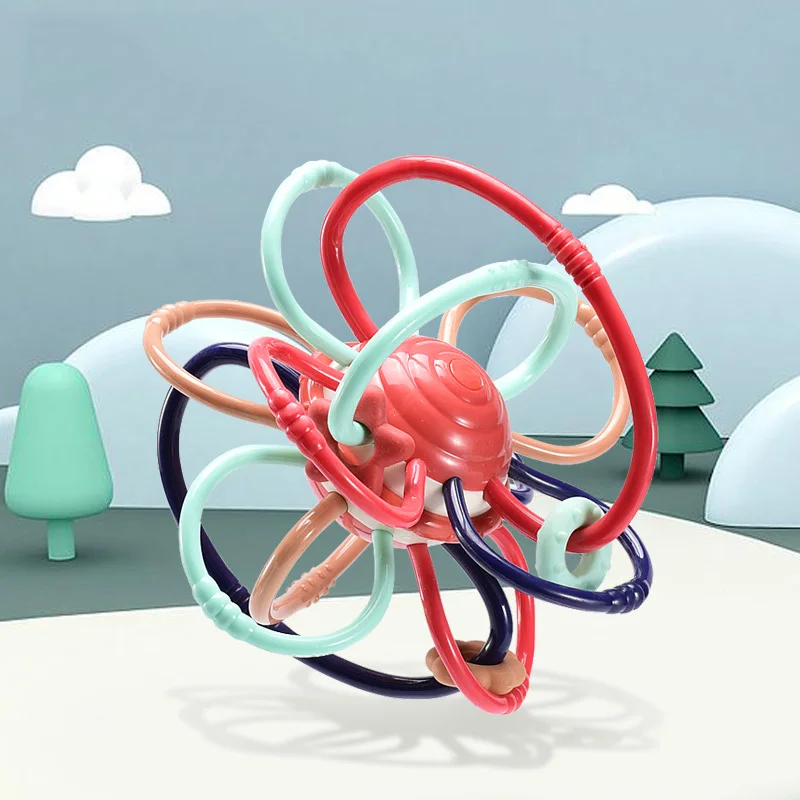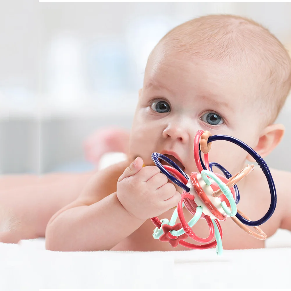 Детская погремушка и сенсорный шарик-грызунок, безопасные мягкие игрушки для прорезывания зубов для мальчиков и девочек, для детей 0-12 месяцев, Развивающие Игрушки для раннего возраста
