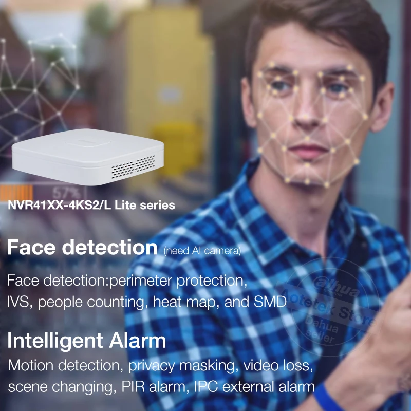 AI by CameraFace detection, perimeter protection, IVS, people counting, heat map