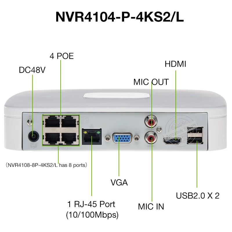 Dahua оригинальный MultiLang NVR4104-P-4KS2L NVR4108-8P-4KS2L 1HDD 48CH 48poe сетевой видеорегистратор P2P ONVIF H.265 Аудио Сигнализация
