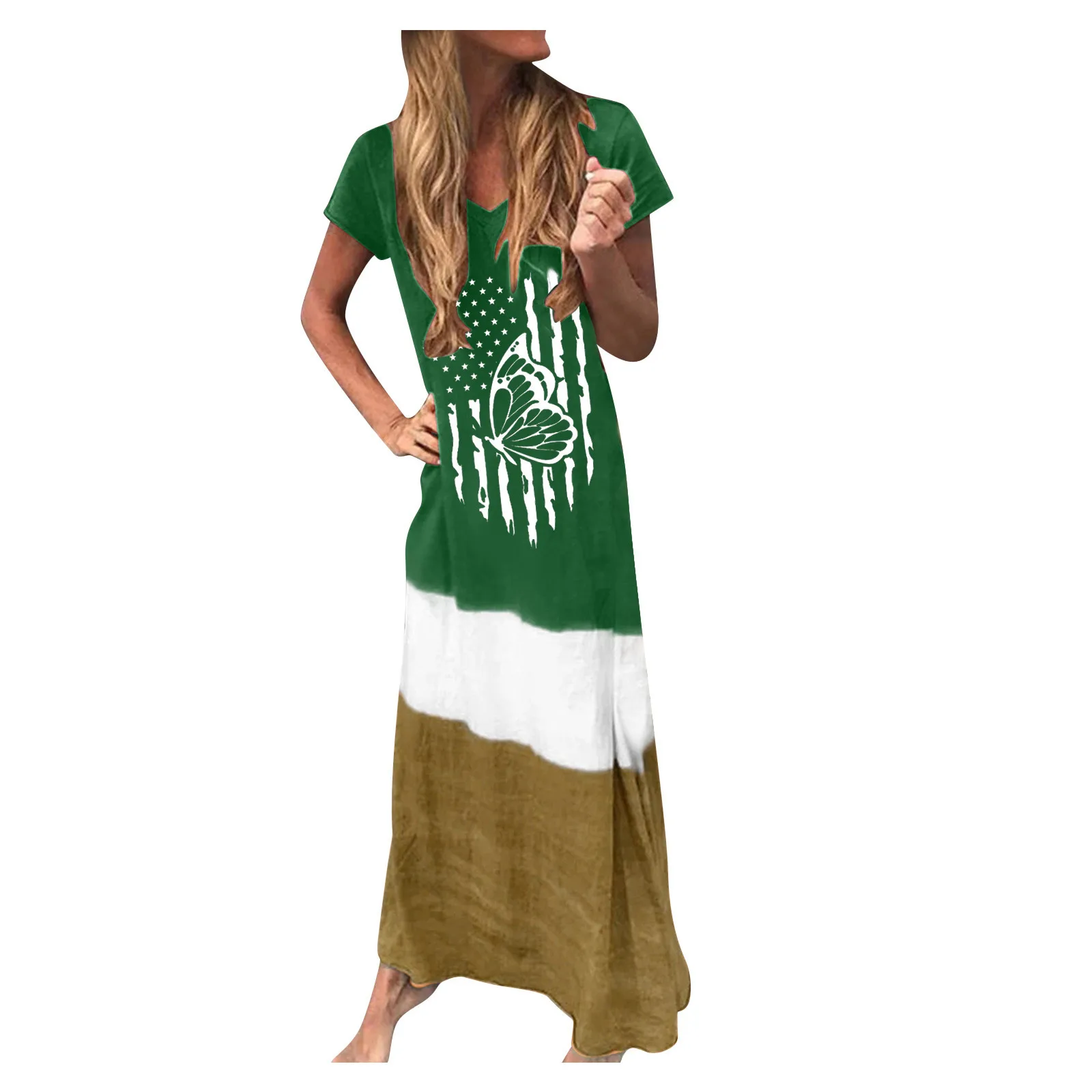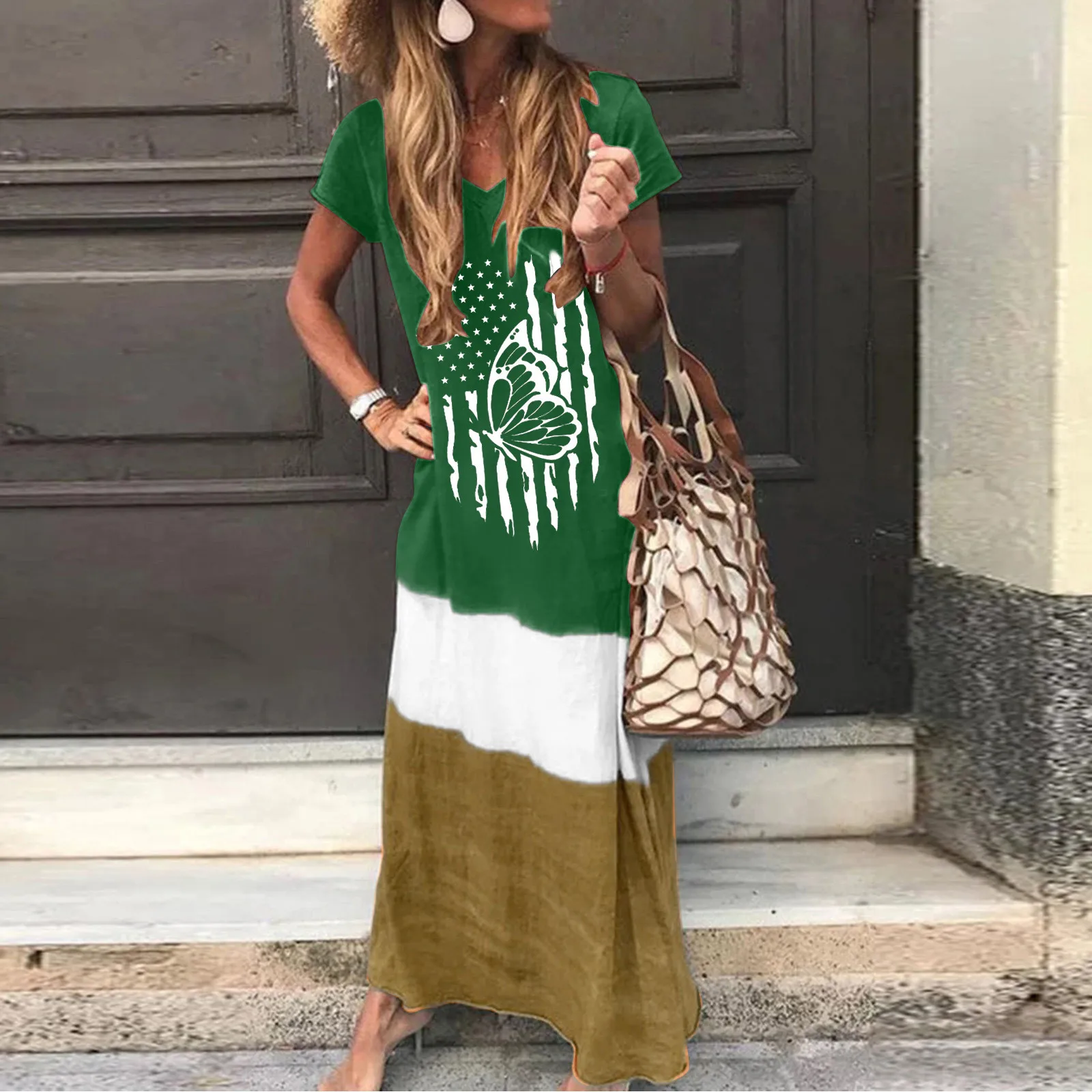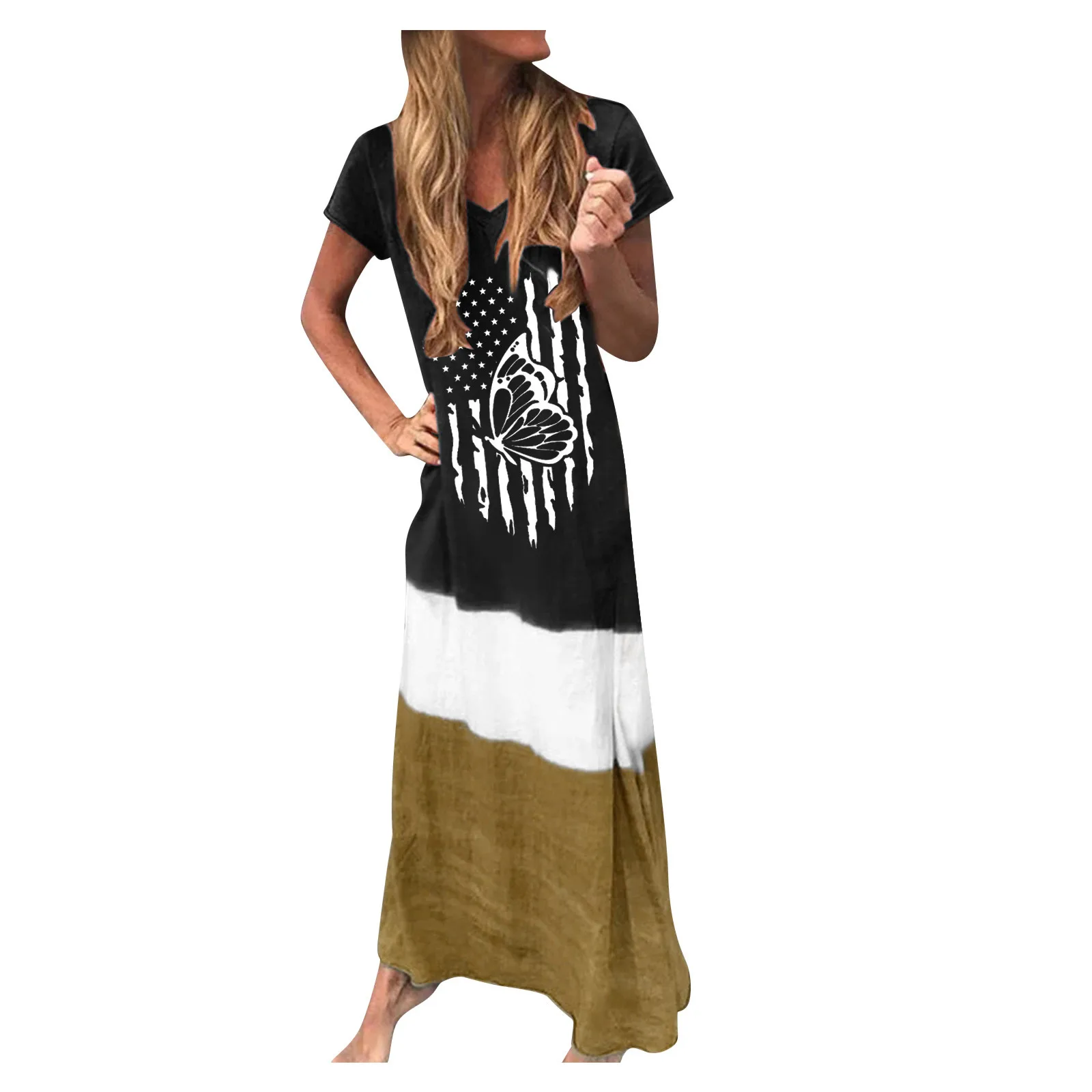 Женское платье в горошек, с V-образным вырезом и коротким рукавом