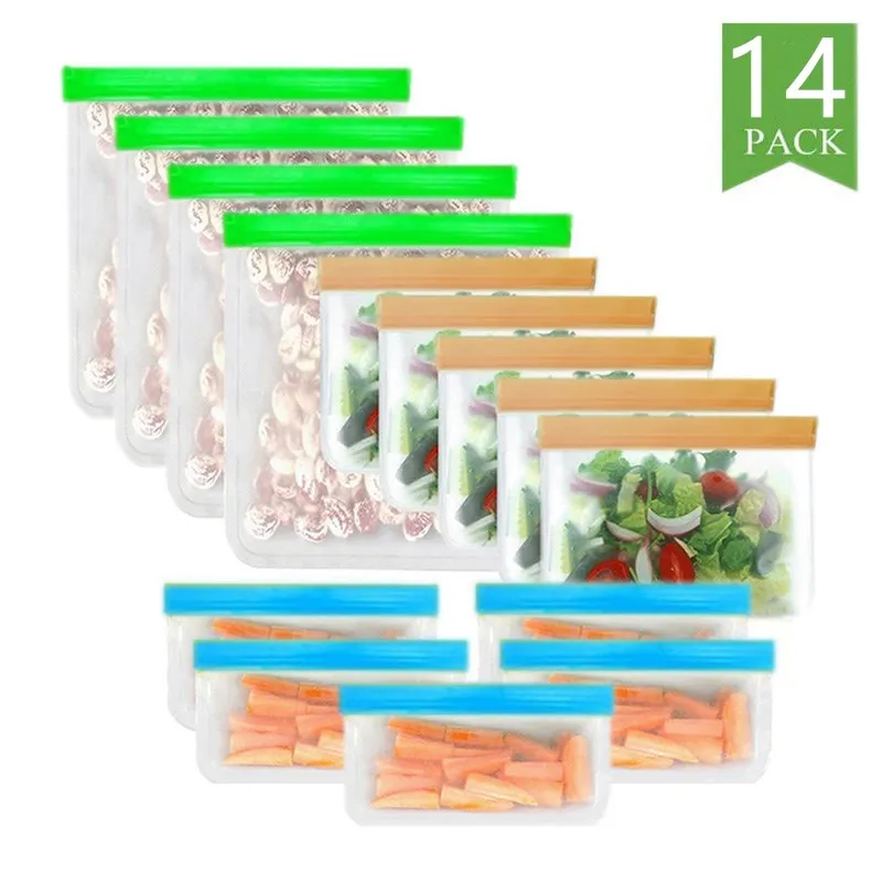 14 шт.компл. силиконовая сумка PEVA силиконовый Еда сумка для хранения Контейнер Герметичный многоразовый мешок для хранения пакеты для сохранения свежести продуктов Еда сумка для хранения