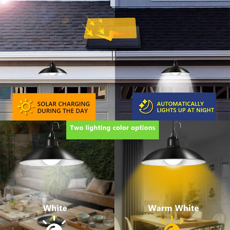 Подходит для: ① функция ключ 1. Нажмите на выключатель, чтобы сделать световая вспышка, а это означает, что turm на, а затем нажмите на выключатель, чтобы выключить ②Installation шаги Подключите разъем панели солнечных батарей линии, во-первых, установить солнечные панели и фиксации положения на открытом воздухе под прямыми солнечными лучами и в местах с повесить подвесной светильник колпак по своему желанию и поместите освещения