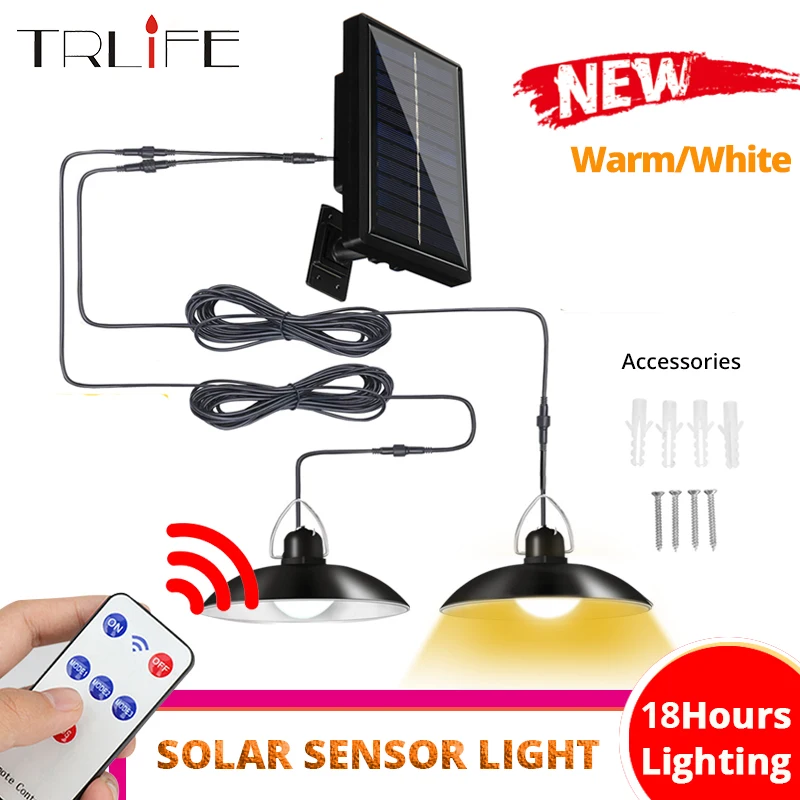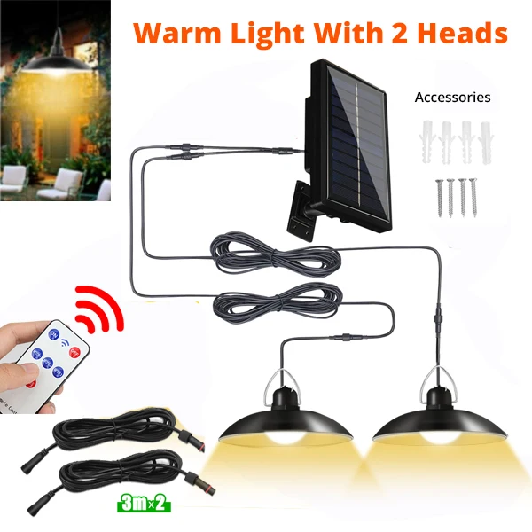 Светодиодный солнечный подвесной светильник Крытый солнечной энергии лампа с USB линии лампы сарай Освещение для дома и сада двор с двойной головкой люстра