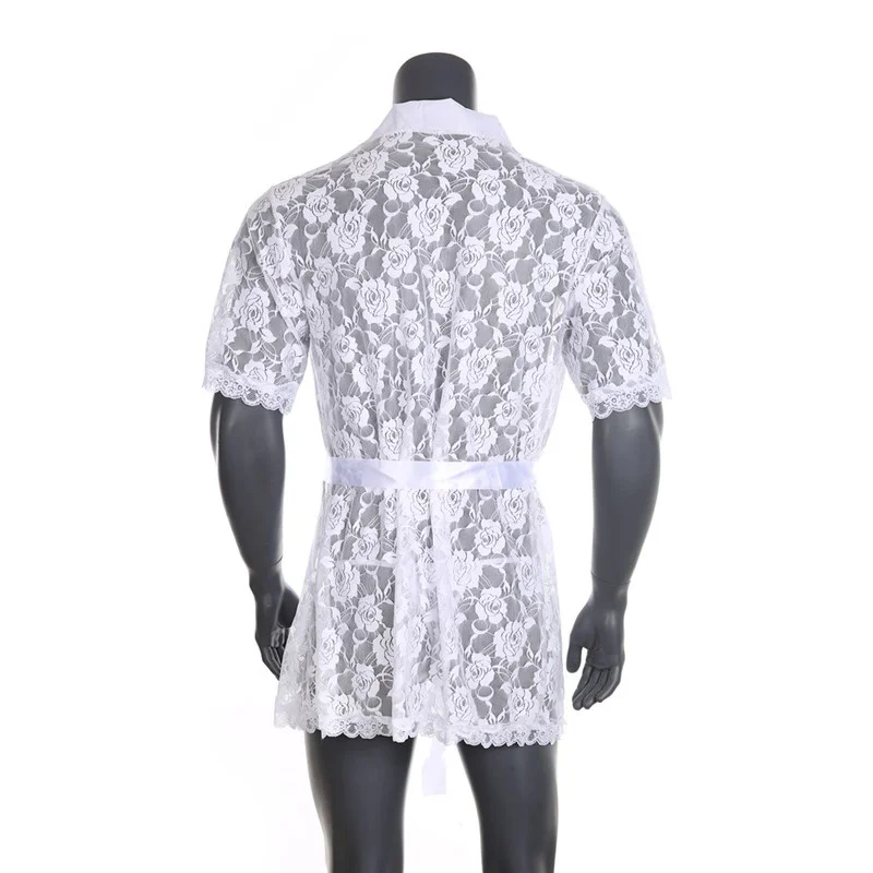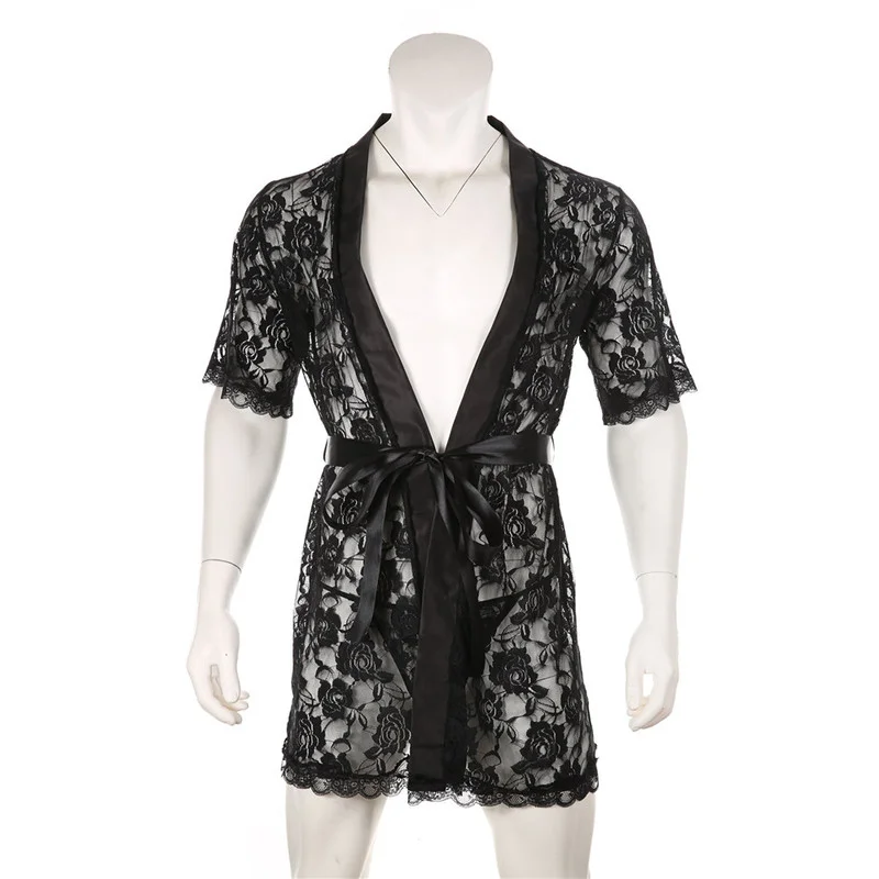 Мужские сексуальный кружевной халат ночная рубашка; одежда для сна Прозрачная Ночная Сорочка свободного банные халаты эротические пижамы Ночная рубашка для мужчин эротичное мужское белье Sexy Gay Mens Халат