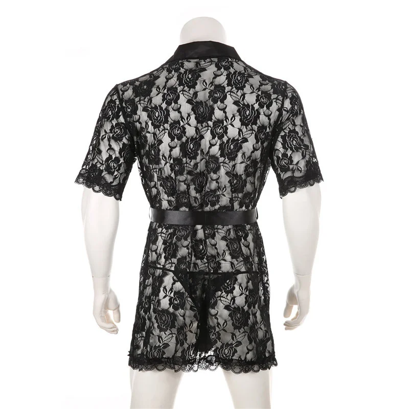 Мужской комплект ночной рубашки, сексуальный кружевной прозрачный х...
