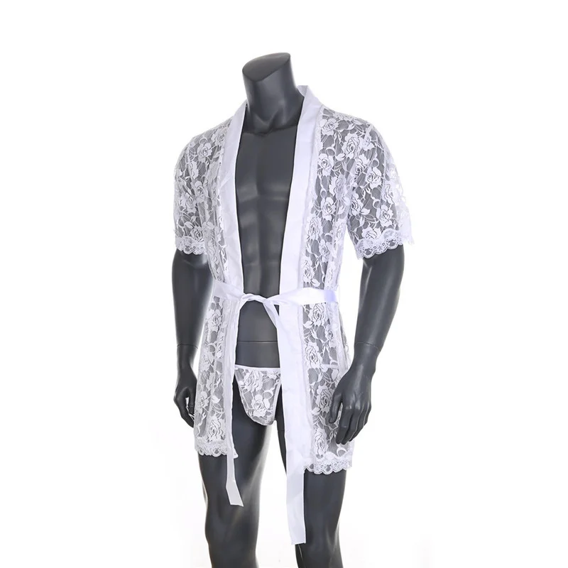 Мужской сексуальный кружевной прозрачный банный халат с стрингами, ...
