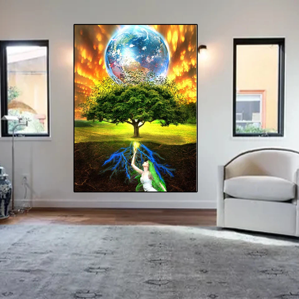Полный квадрат/Круглый Алмаз 5D DIY Алмазная картина "Земля дерево женщина 3D вышивка крестиком Мозаика украшение дома подарок