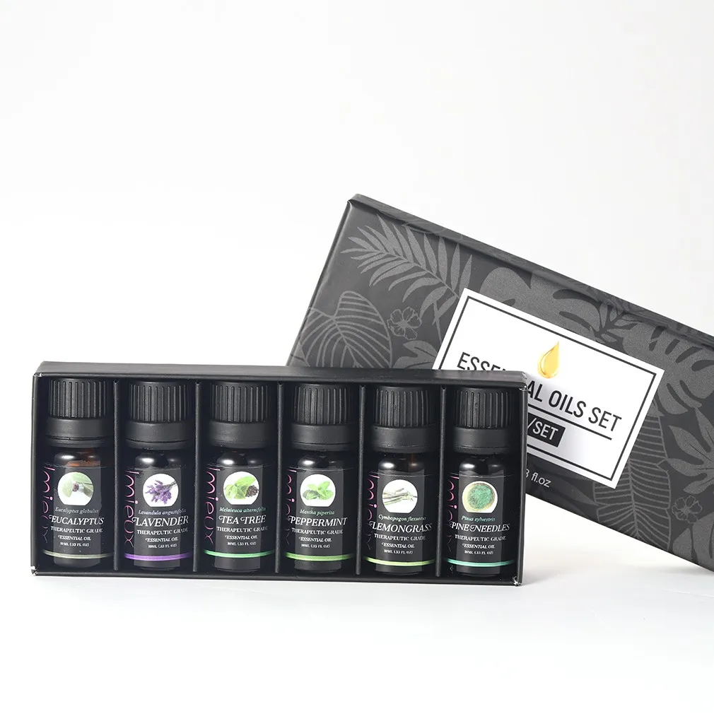 10 мл 6 шт.комплект, эфирные масла для ароматических диффузоров, апельсин, лаванда, чайное дерево, перечная мята, эвкалипт, Лемонграсс