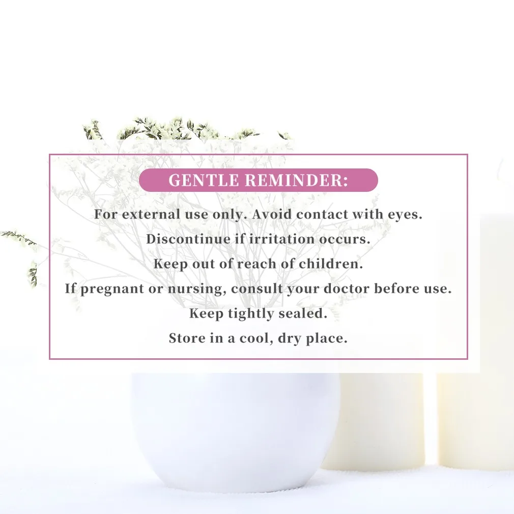 Массаж-Наши масла сильны, поэтому, пожалуйста, не используйте их непосредственно на вашей коже. Добавьте несколько капель в масло-носитель (например, масло грейпса), иЗатем массируйте его на лбу, ладонях, шее, спине, ногах или других пораженных областях, творите чудеса.