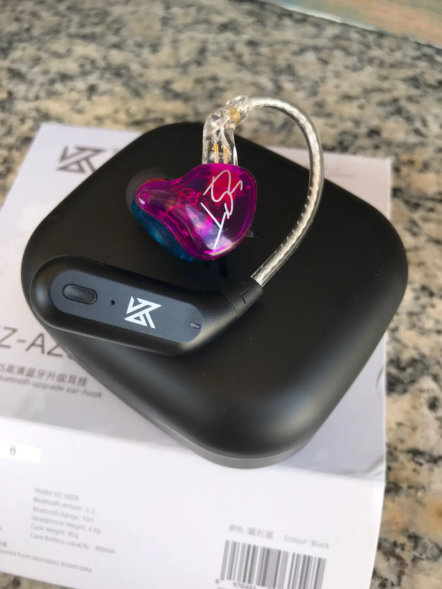Идеальный модуль bluetooth для преобразования почти любого IEM с беспроводным кабелем. Много раз, когда вы слышите некоторые микроразрезы, но это нормально в зависимости от подключения к компьютеру, где вы подключаете его. Очень хороший объем звука, коробка идеальна, так как вы можете сохранить пару IEM внутри, что делает ее очень удобной. Очень хорошая автономия. Почти 7 часов при объеме от 60% до 70%. Серьги удобны, и за исключением того, что вы делаете странный жест с головой, едва заметно, что вы носите их. Это уже третья коробка, которую я покупаю для своих наушников, и я почти уверен, что куплю еще. Very very fast shipping by KZ. Всего 9 дней до Испании. Рекомендуемый продавец. Но они могут улучшить обслуживание клиентов, так как они занимают много времени, чтобы ответить, так как вы оставляете им запрос в службе чата.
