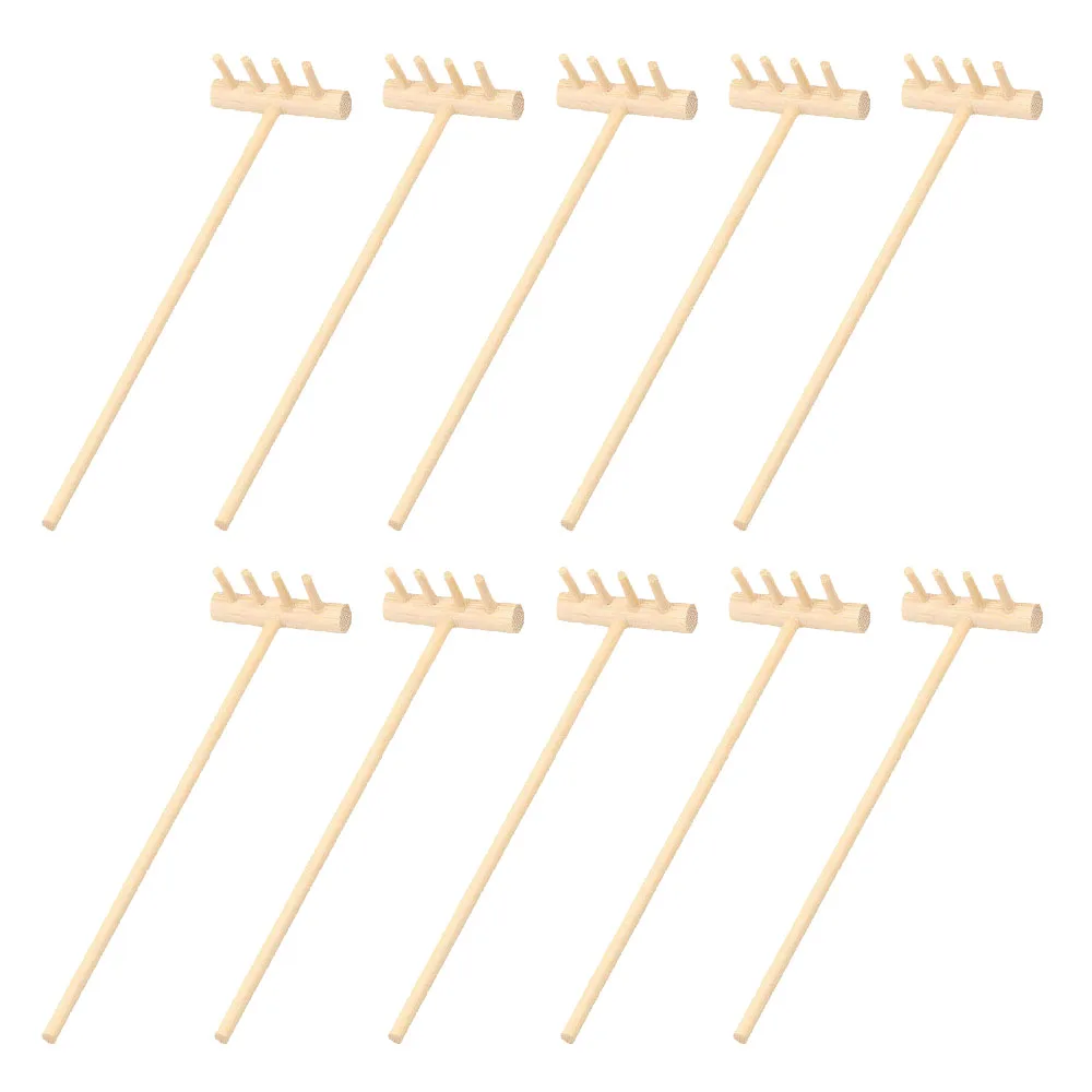 10 шт. Мини Деревянные грабли бамбуковые грабли для сада миниатюрный песочный лоток инструменты ручной работы ремесла украшение садовый инструмент