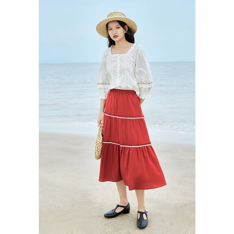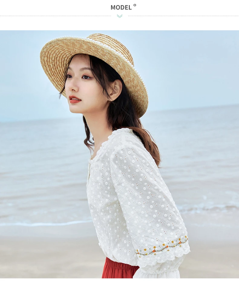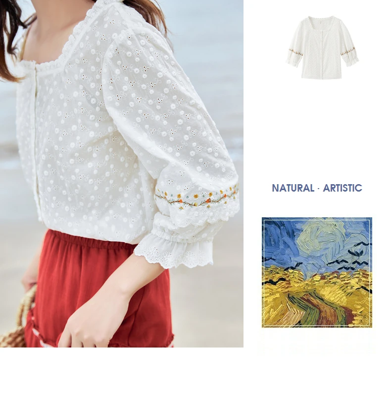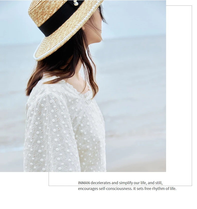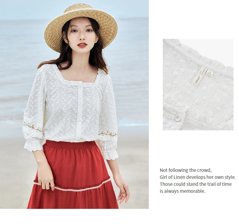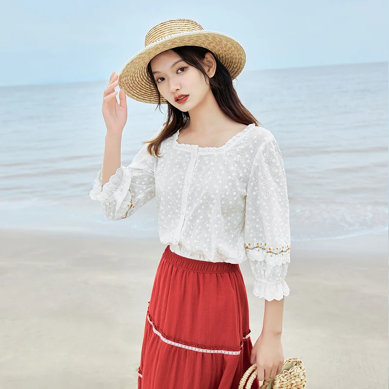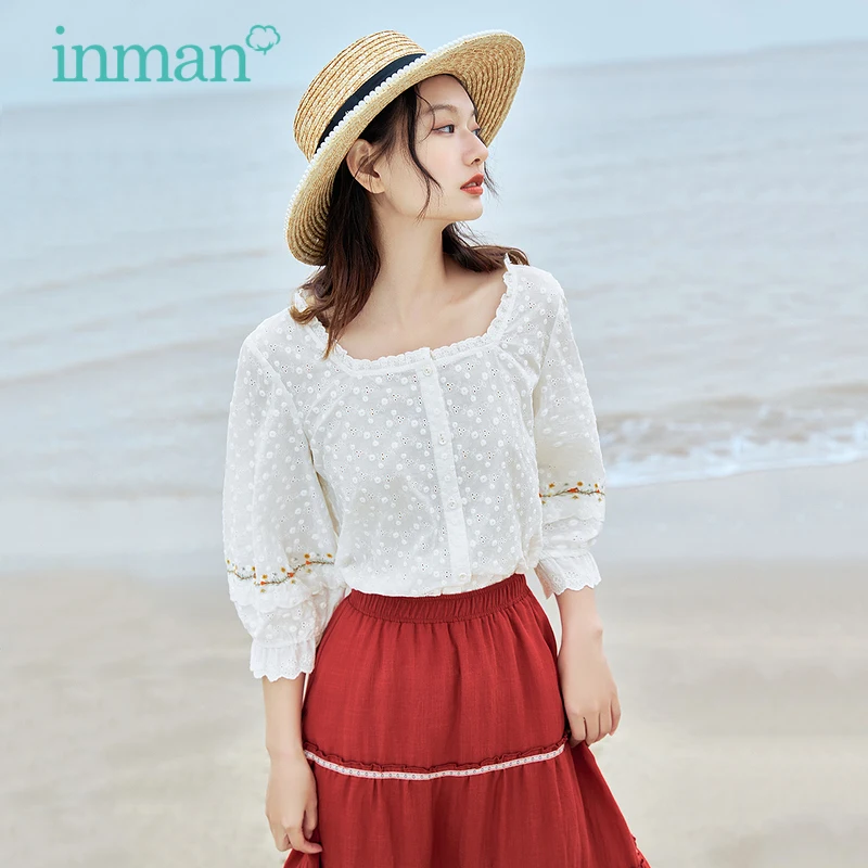 Винтажная белая блузка в стиле Инман, элегантная женская шикарная рубашка для девушек, Пляжная блузка с вышитыми цветами и квадратным воротником, топы Добби с рукавом 34