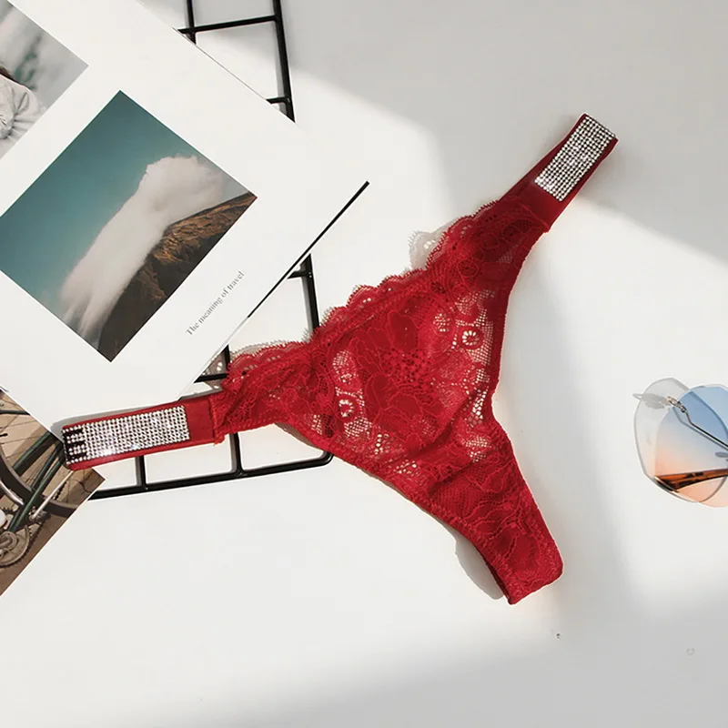 Сексуальное женское нижнее белье Стразы, кружевные прозрачные стринги с буквами, T-образные сзади для женщин, мягкие женские трусики с низкой посадкой, черное нижнее белье