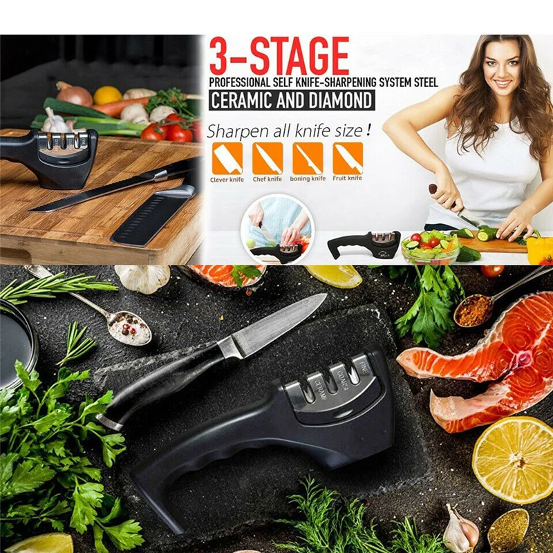 Инструмент для заточки ножей, трехступенчатая Алмазная кухонная утварь из керамики, вольфрама, стали, нескользящий, ручной бриллиант, #40