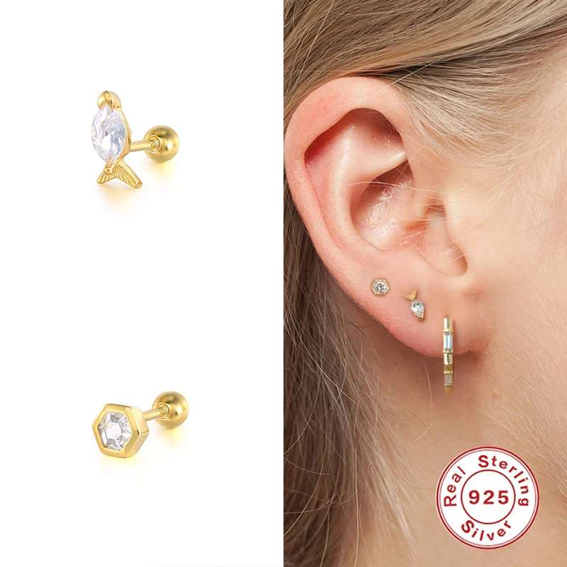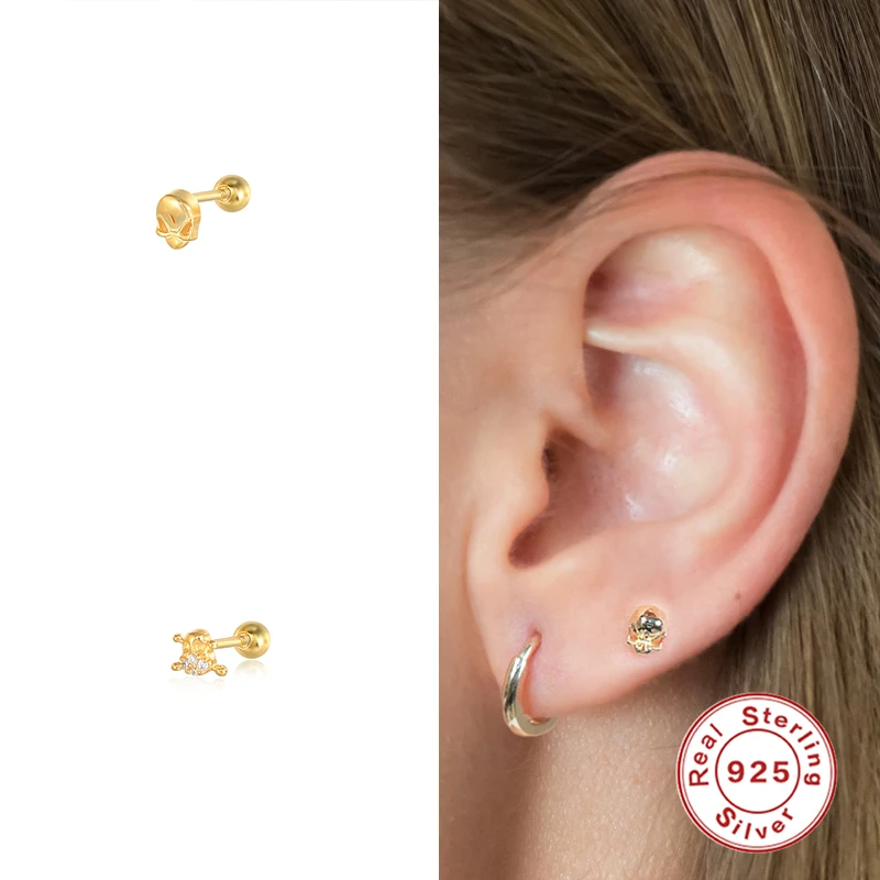 Автоклав 925 стерлингового серебра 2021 серьги для женщин, девушек, мужчин, череп в виде геометрических фигур Хрустальный пирсинг тонкие женские серьги