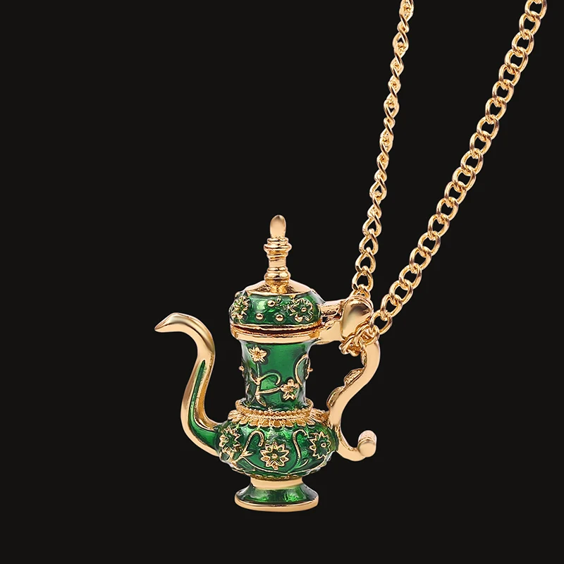 Хип Колба-чайник кулон ожерелье Эмаль Зеленый Синий Металлические о...