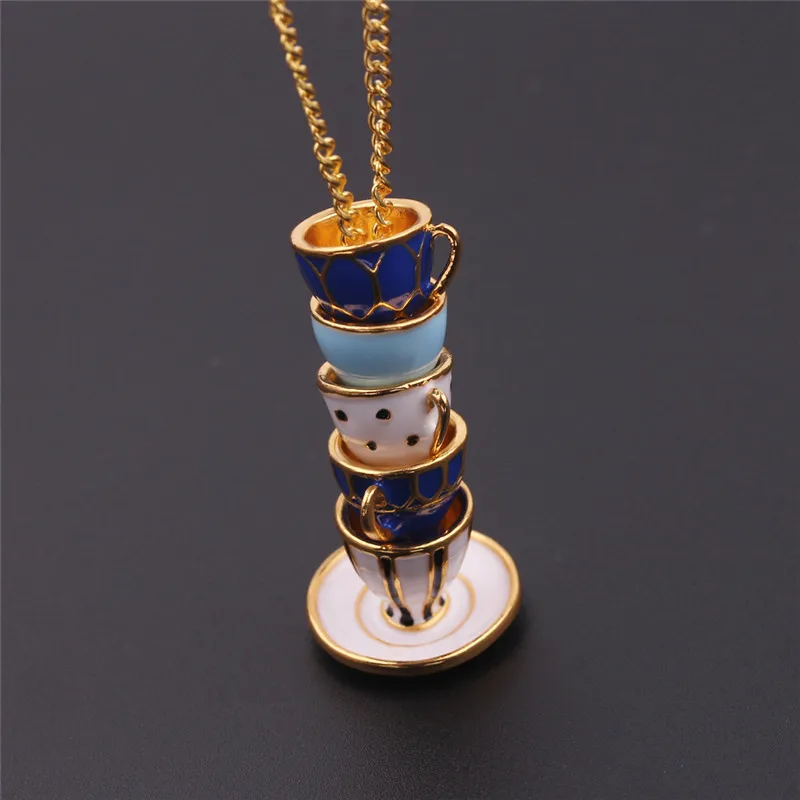 Новый дизайн подвеска на чашку ожерелье модная эмалированная чашка на Свитер Цепочка аксессуары для одежды для женщин ювелирные изделия для девушек
