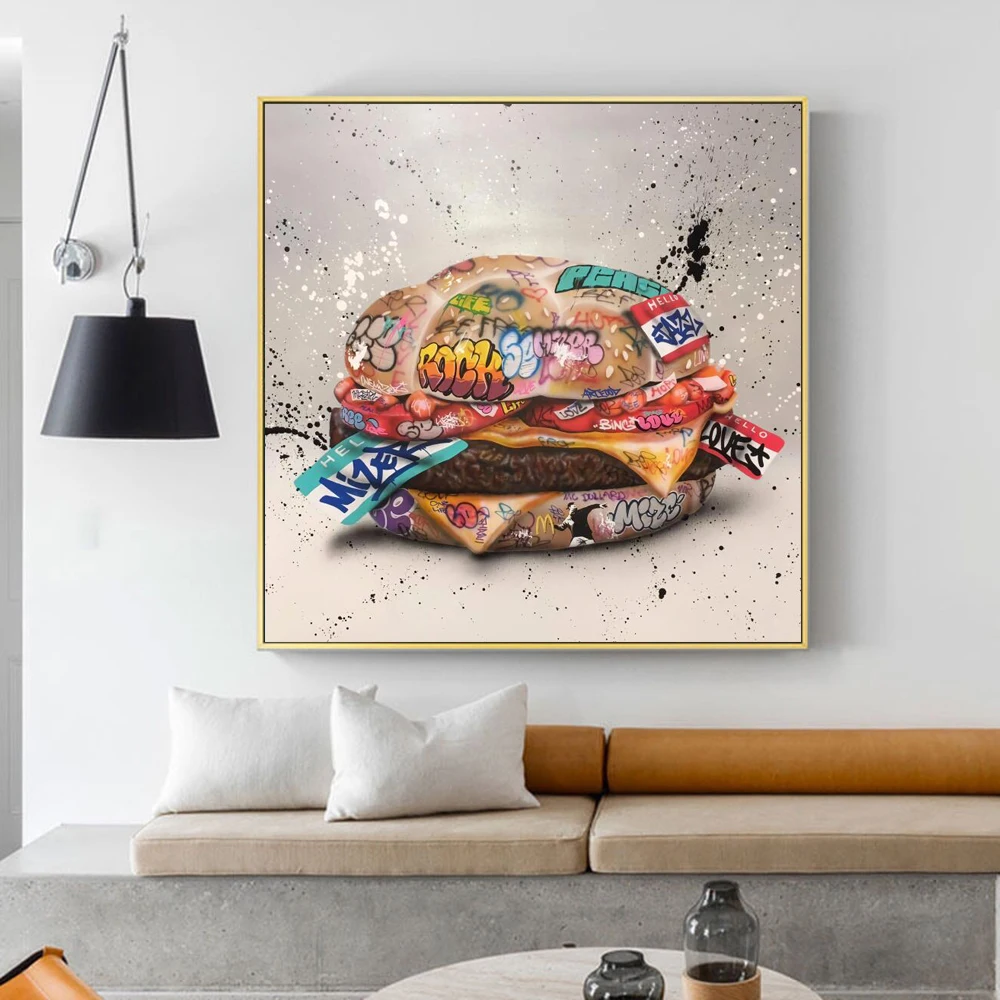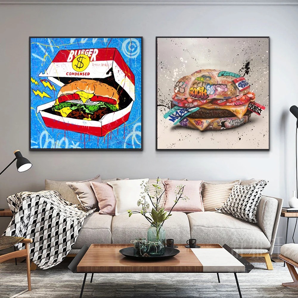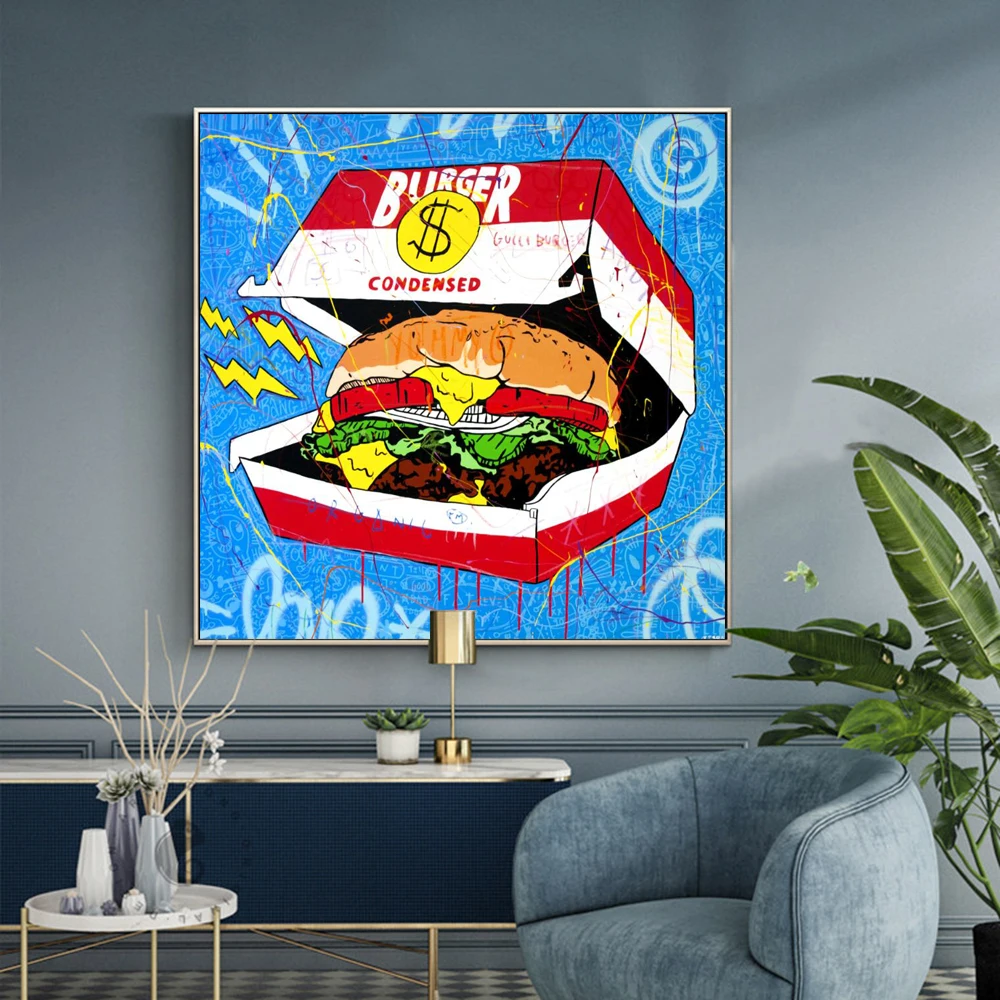 Современный граффити художественные плакаты и принты холст картина на стену, полотно, каракули абстрактный гамбургер Картины для комнаты настенный Декор без рамки