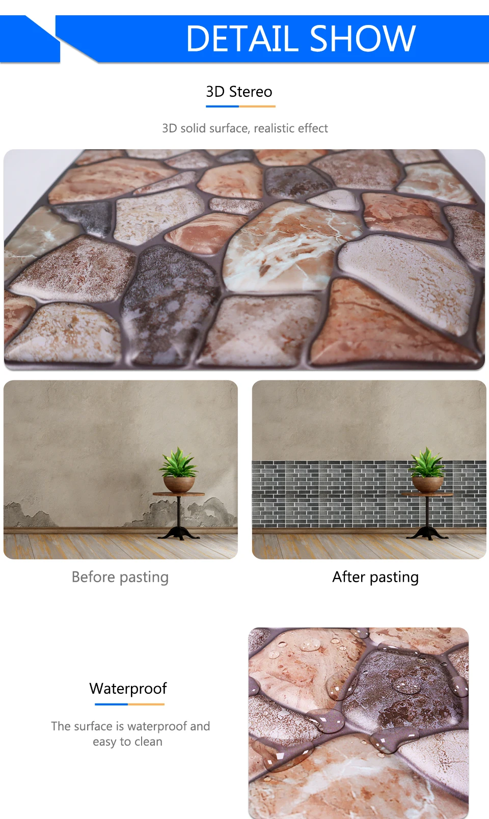 Настенные 3D клейкие стикеры, имитация мраморной кирпичной кожуры, самоклеящиеся, водонепроницаемые, сделай сам, для кухни, ванной, дома, панели из ПВХ-плитки