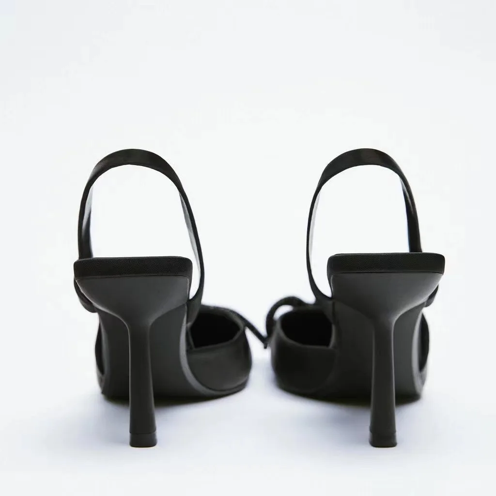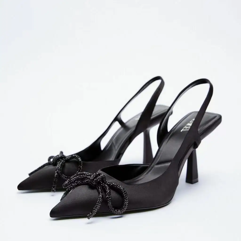 Женские туфли без задника LMCAVASUN, осенне-зимние, черные, блестящие, с ремешком на пятке, на высоком каблуке