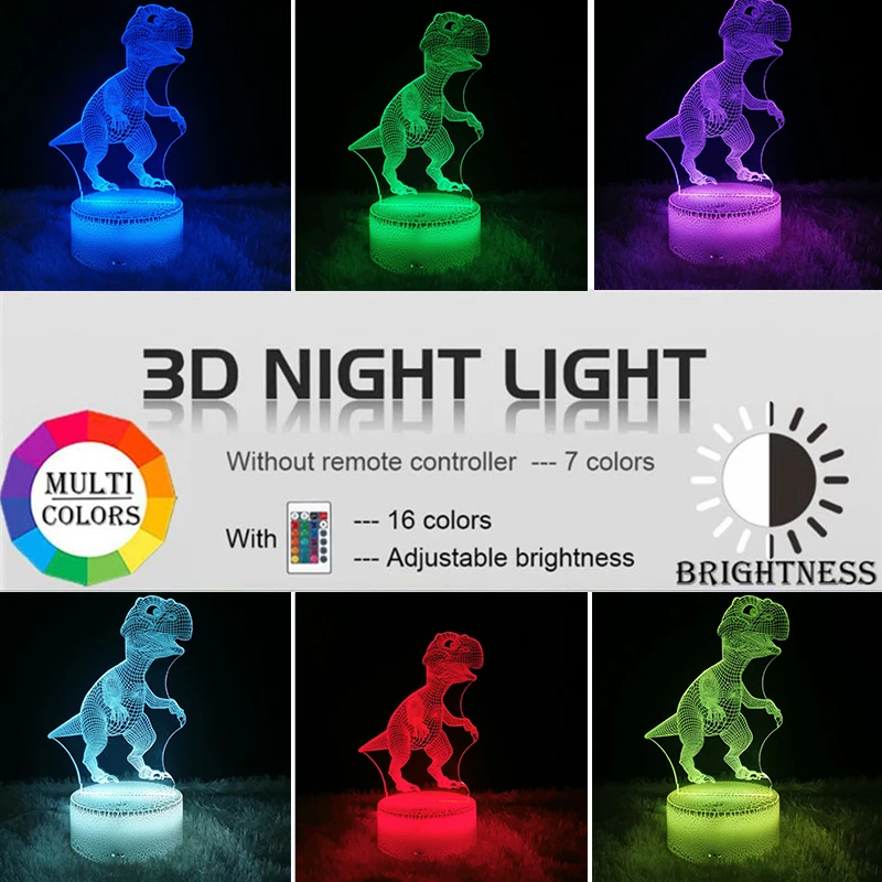 HQXING серии динозавров цветов 3D светодиодный ночсветильник с дист...